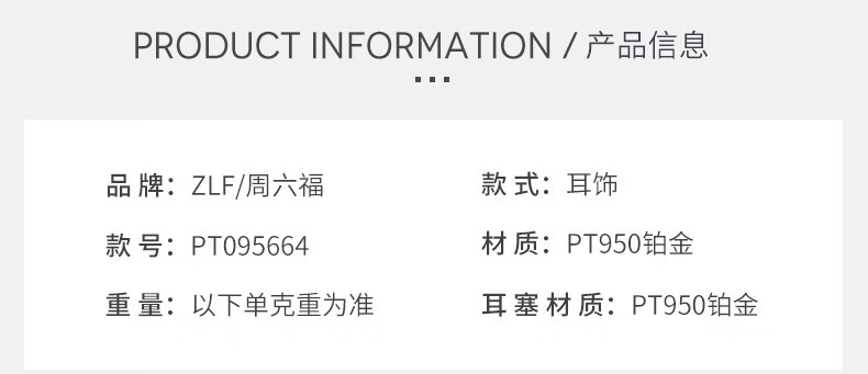 Saturday Fortune (ZLF) PT950 platinum earrings for women platinum simple and versatile love earrings 1.18g