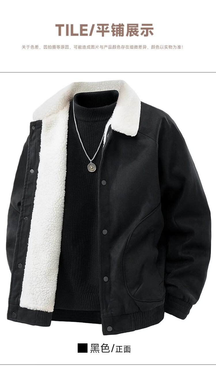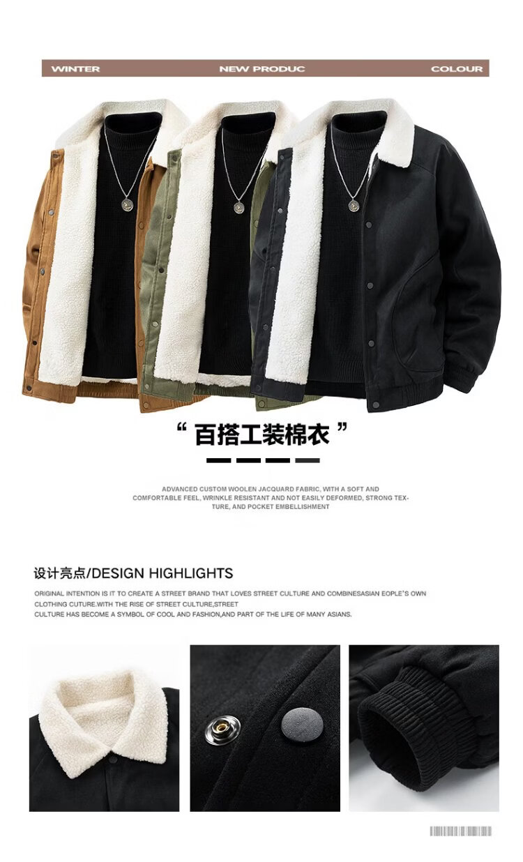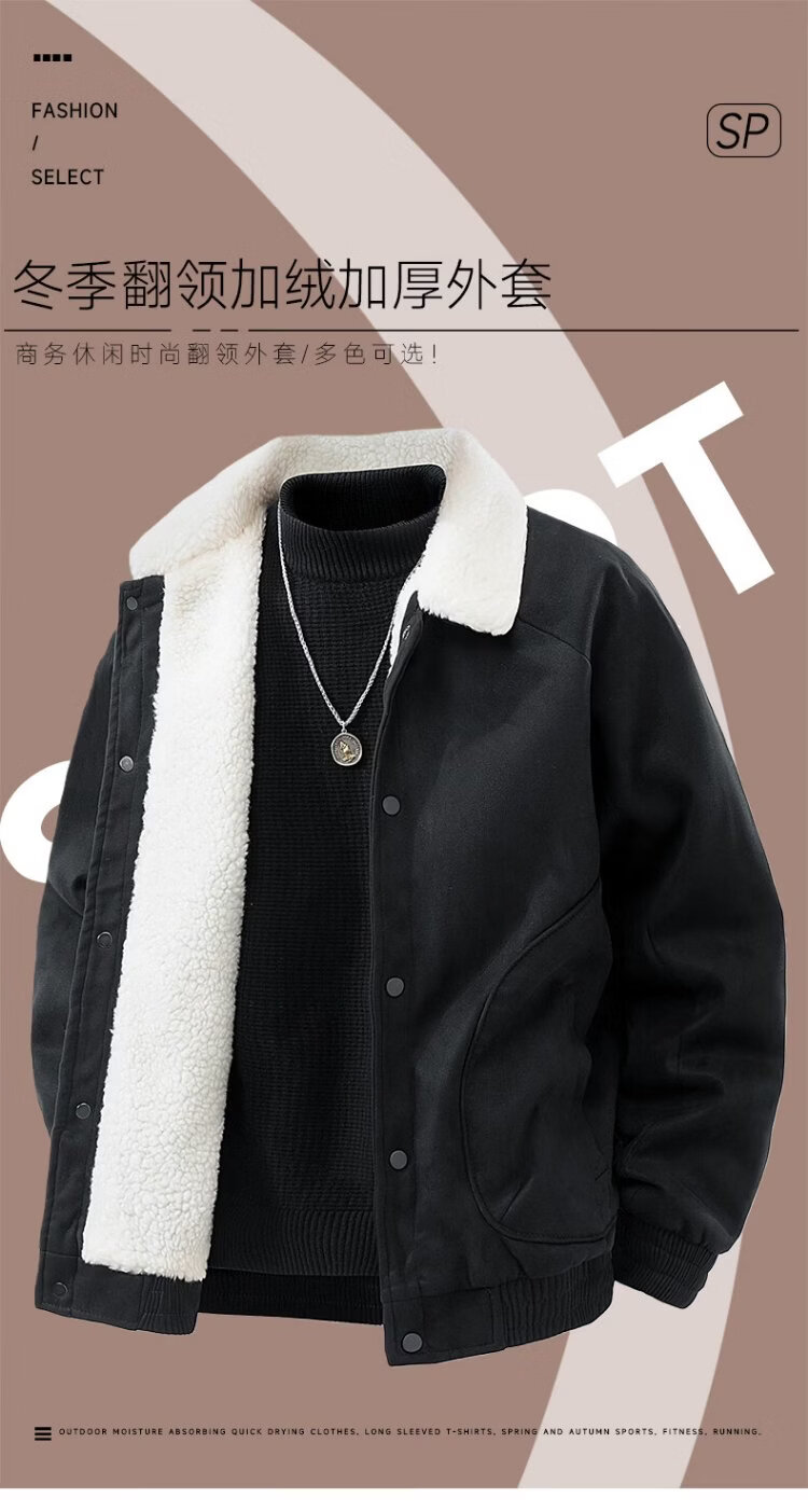 NASA MARVEL Cotton Jacket Men's Autumn and Winter Lapel Thickened Warm Casual Versatile Jacket Black 2XL