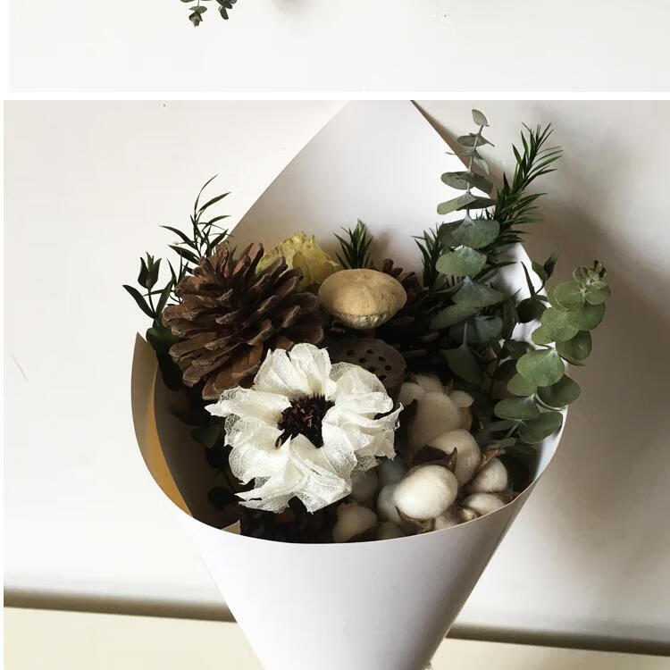 AIMAN dried flower pine cones, cotton eucalyptus leaves dried flowers, Nordic style ins small fresh home decoration ornaments bouquet pine cones, eternal pink baby's breath + thousand day powder + cotton + bouquet, dried flower bag