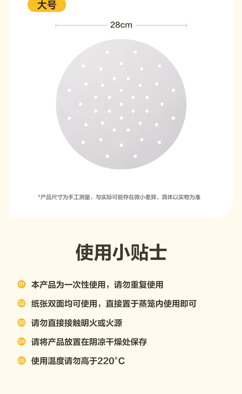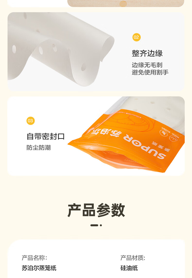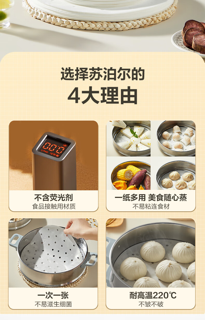 SUPOR steamer paper household food grade paper steamed bun paper steamed bun paper disposable steamer paper KDB20AH10