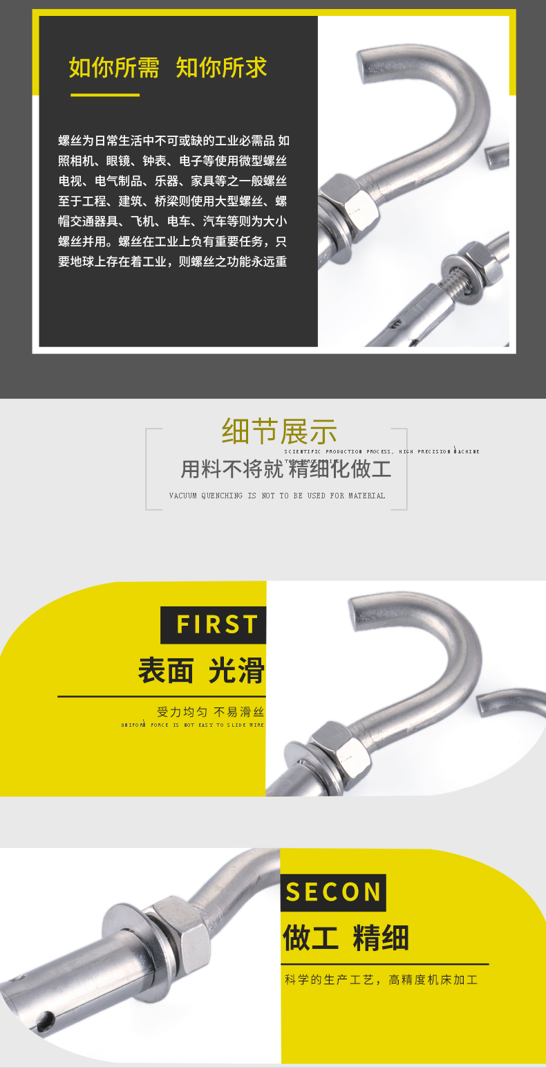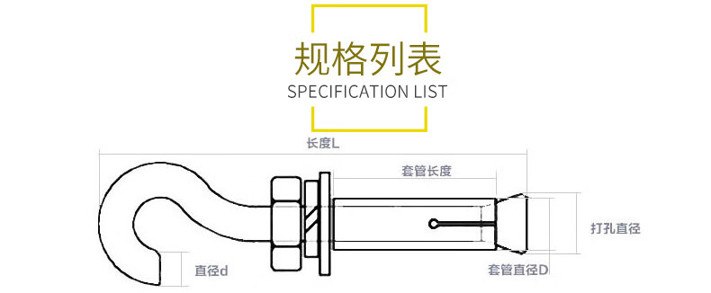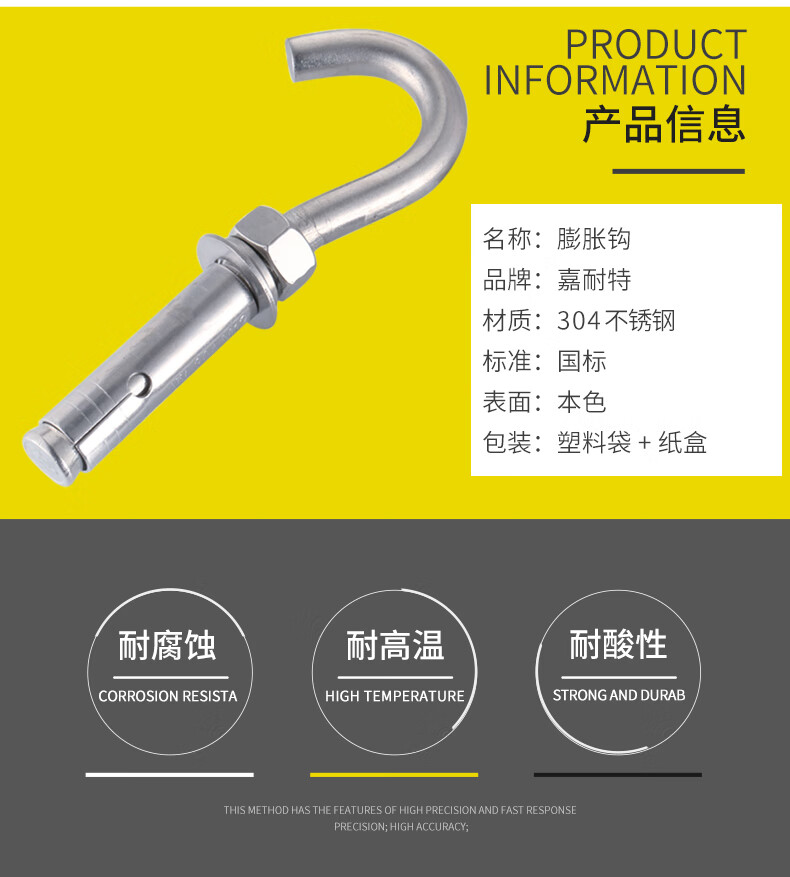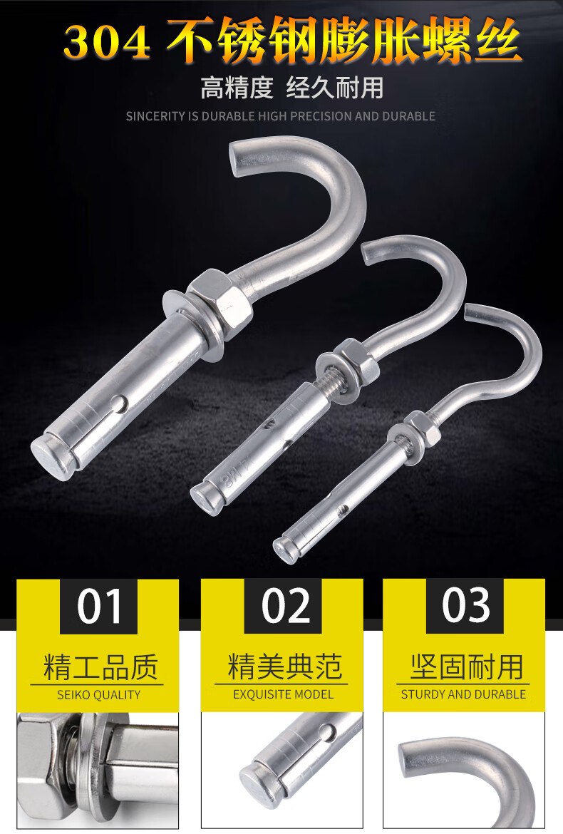 Expansion hook pull 304 stainless steel explosion hook ceiling hook expansion screw hook universal wall hook M6M8M10M12 304 stainless steel M8