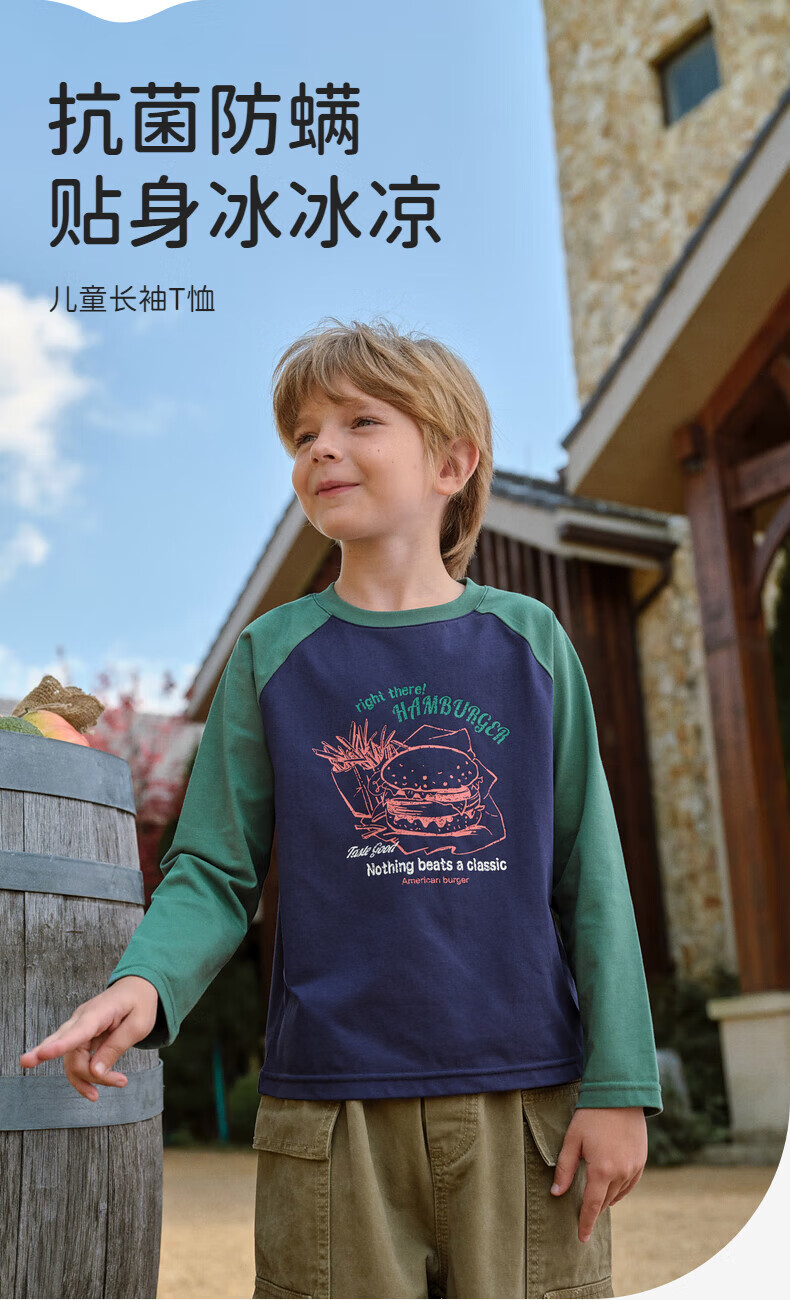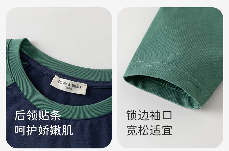 DAVE&BELLA boys' color-blocked T-shirt children's antibacterial cool bottoming shirt spring middle and older children's top