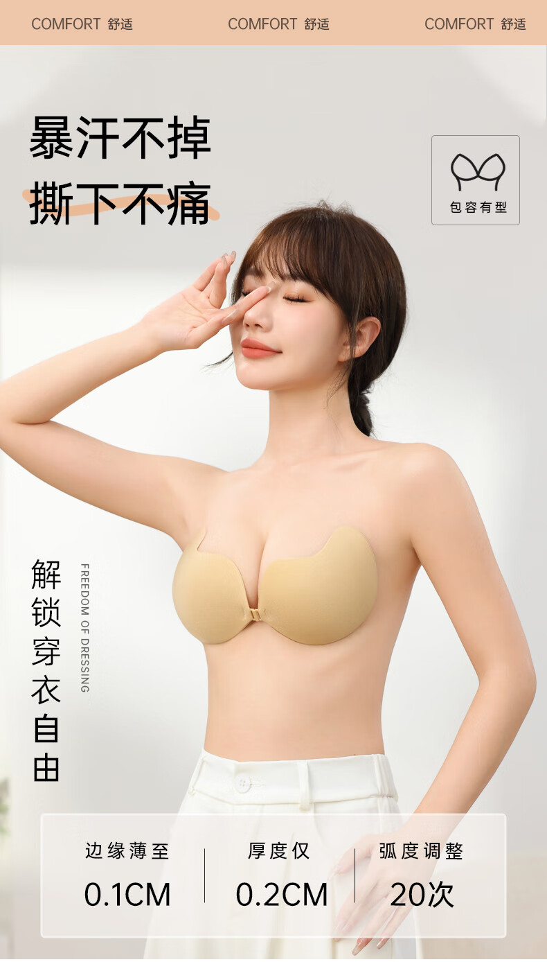 LangSha (LangSha) women's push-up bra stickers, invisible, invisible, anti-exposure, small breasts, big wedding dress straps special bra