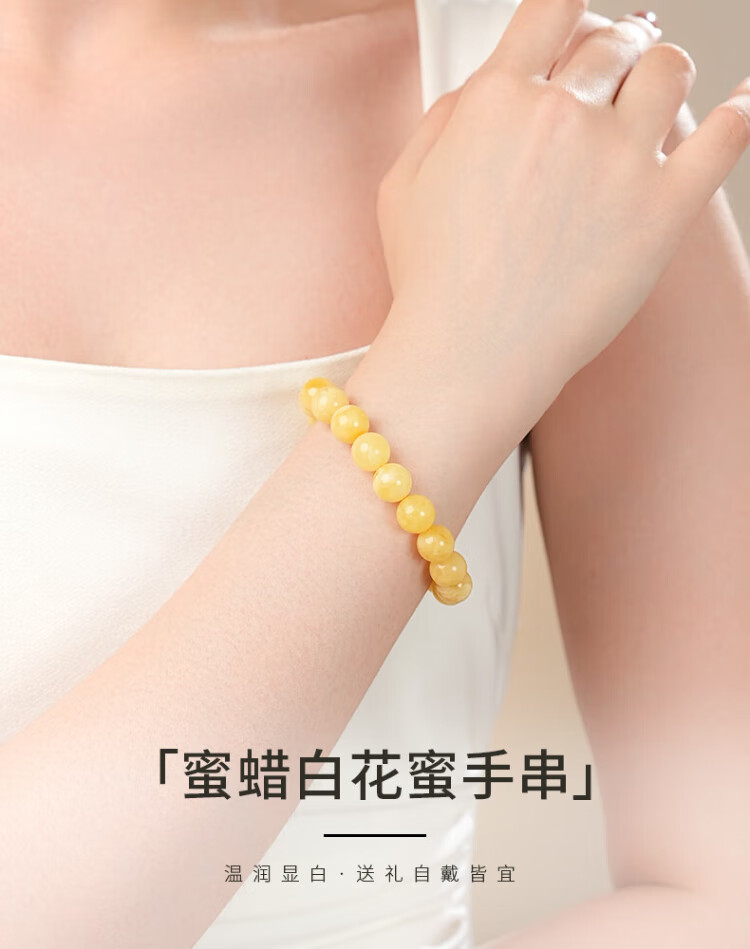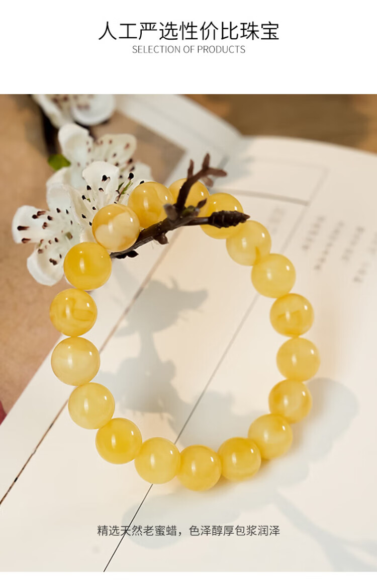 Dara (dara) Russian beeswax bracelet natural white flower honey full of honey unoptimized round bead single circle bracelet for men and women to wear as a Valentine's Day gift