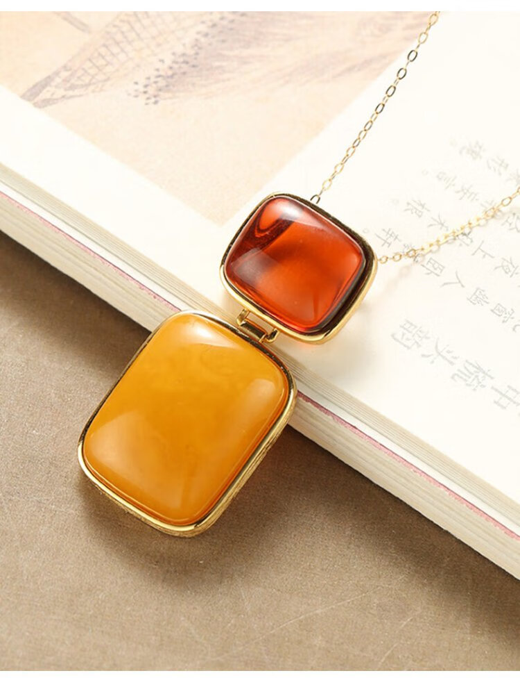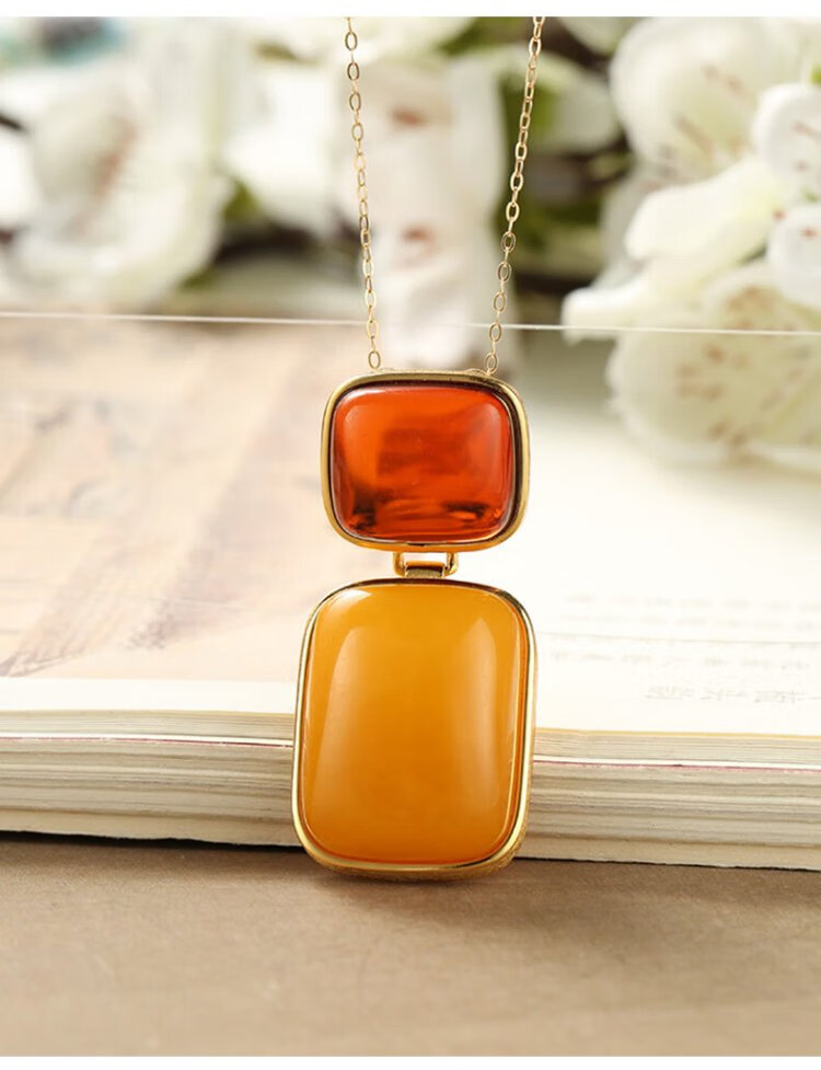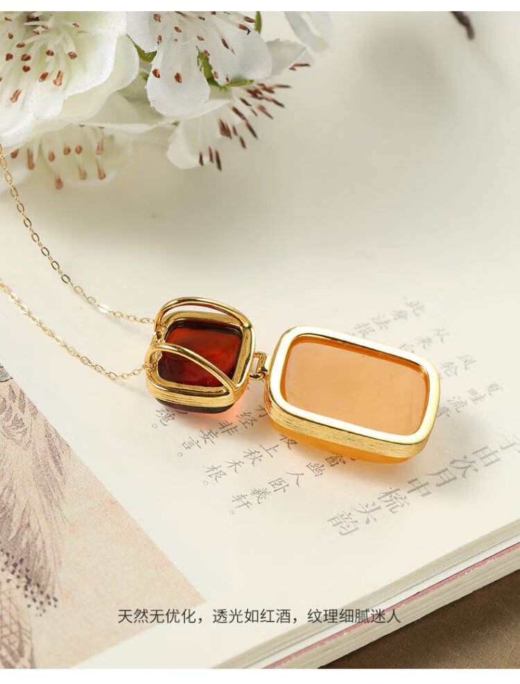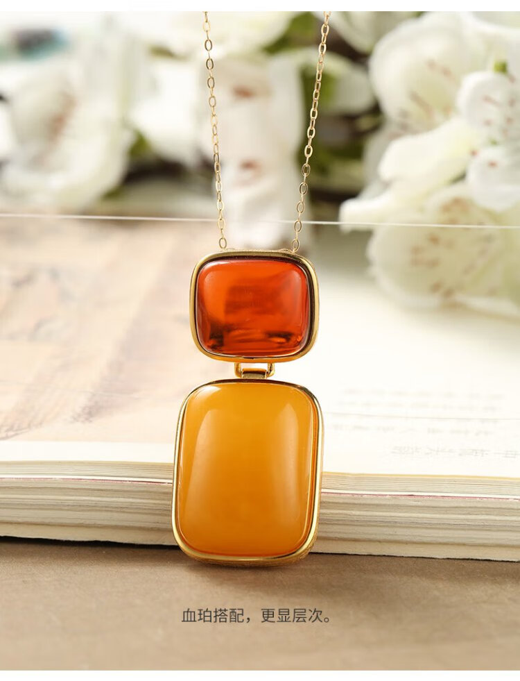 Dara natural amber beeswax pendant for women, yellow blood amber beeswax necklace, practical Chinese Valentine's Day gift for girlfriend
