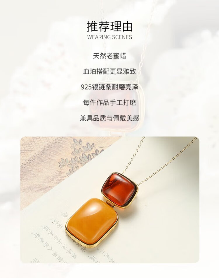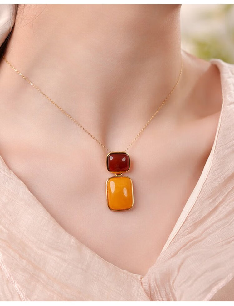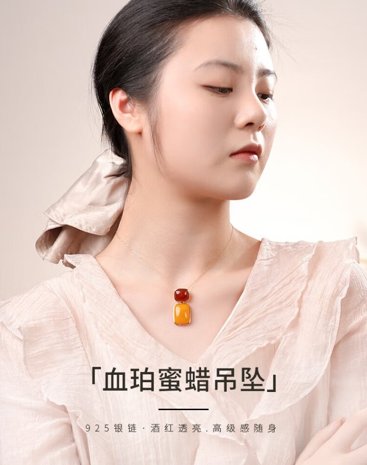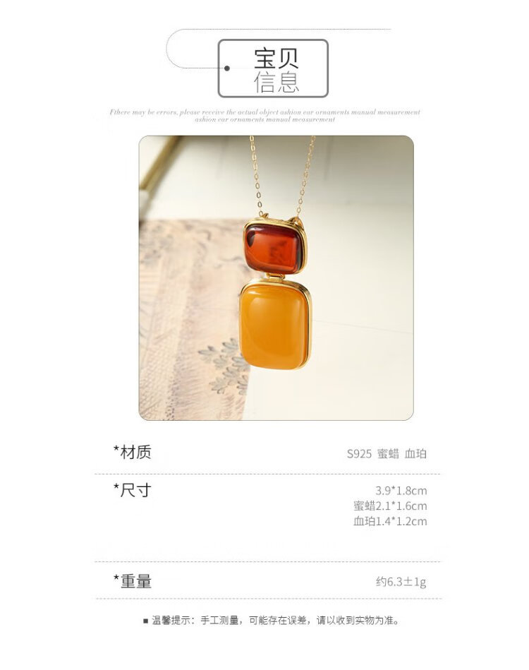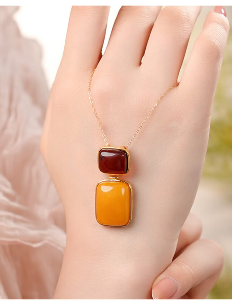 Dara natural amber beeswax pendant for women, yellow blood amber beeswax necklace, practical Chinese Valentine's Day gift for girlfriend