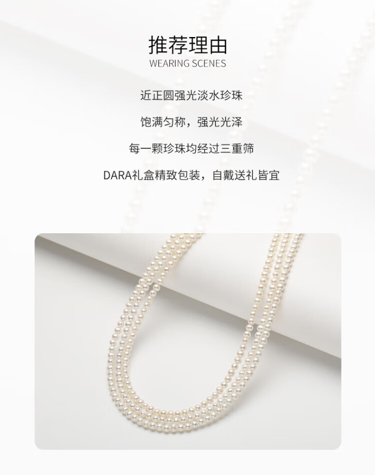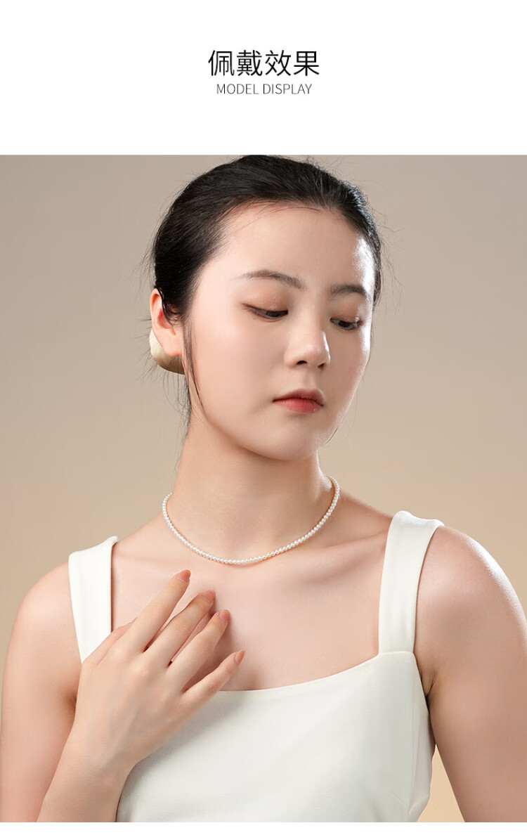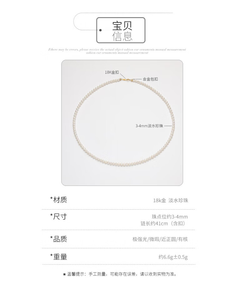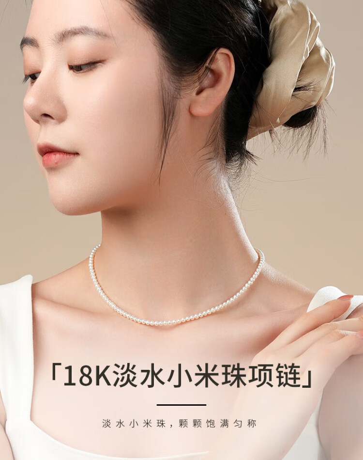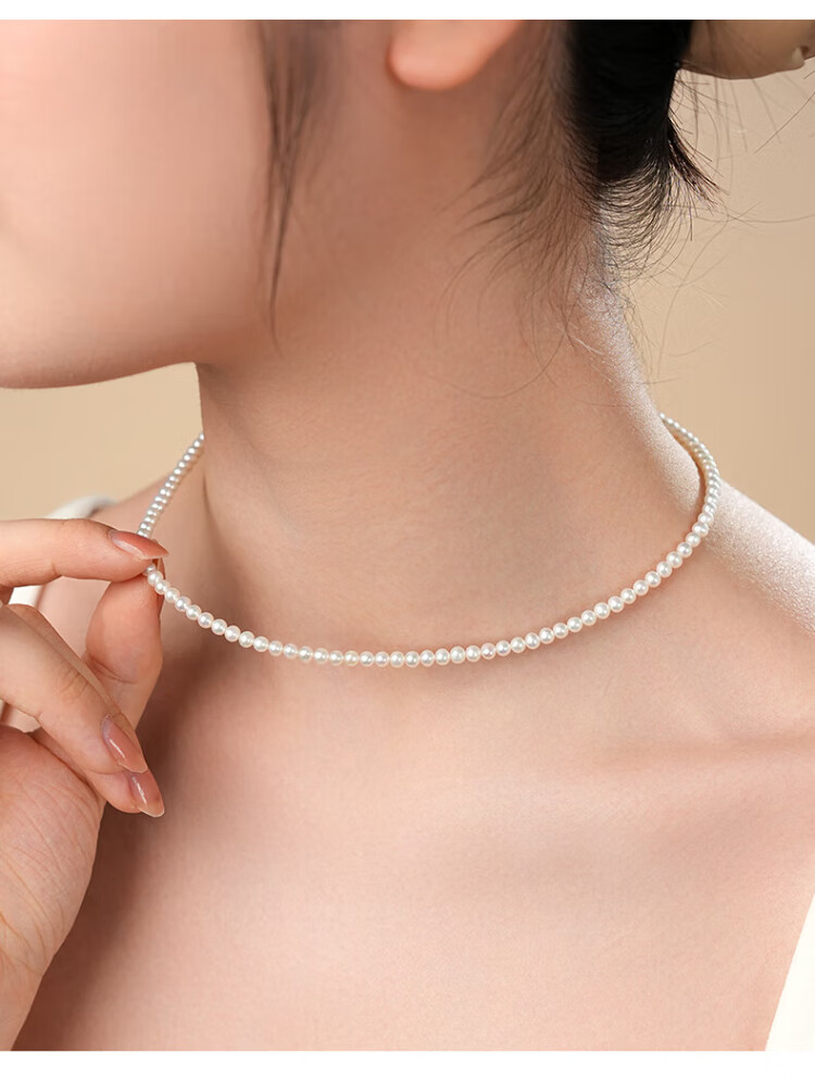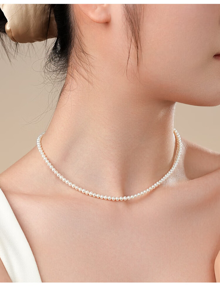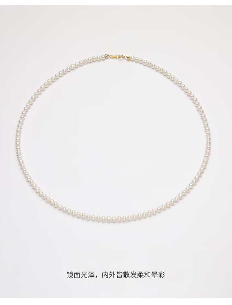 Dara 18K gold freshwater pearl necklace 3-4mm extremely bright light entry necklace for women, versatile birthday gift, practical gift giving