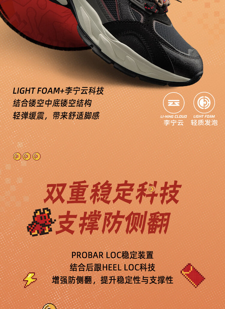 Li Ning (LI-NING) children's shoes, children's sports shoes, boys' arc light 2 shock-absorbing rebound support stable casual shoes 37YKCW002-5