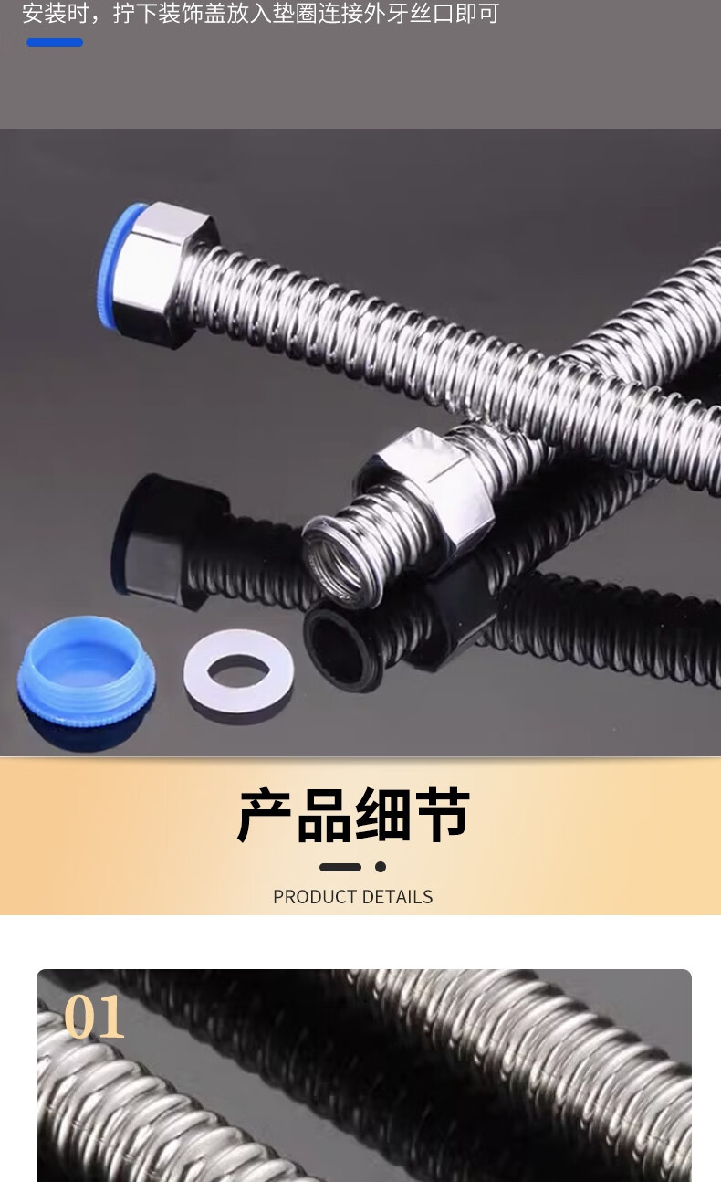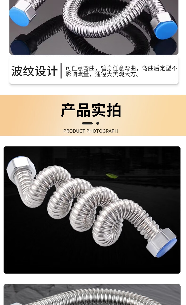 Zhuyu 304 stainless steel corrugated water inlet pipe, water heater hot and cold water pipe, explosion-proof and pressure-resistant corrugated water supply hose, Jingcang 4 minutes 40cm (304 corrugated pipe)