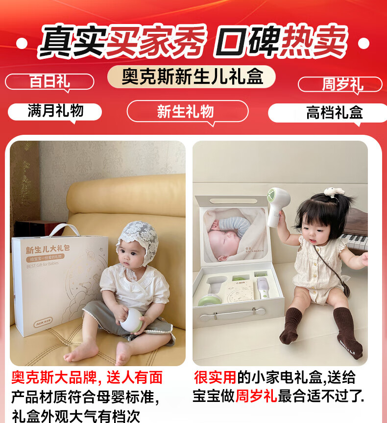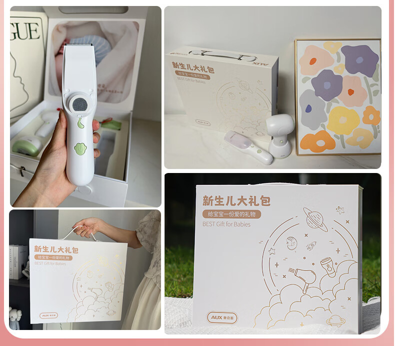 AUX practical gift for newborn meeting, baby's 100-day-old baby's one-month-old hair clipper for shaving, hair dryer and hair clipper for children 0-1 years old, hair dryer and hair clipper set, high-end gift box