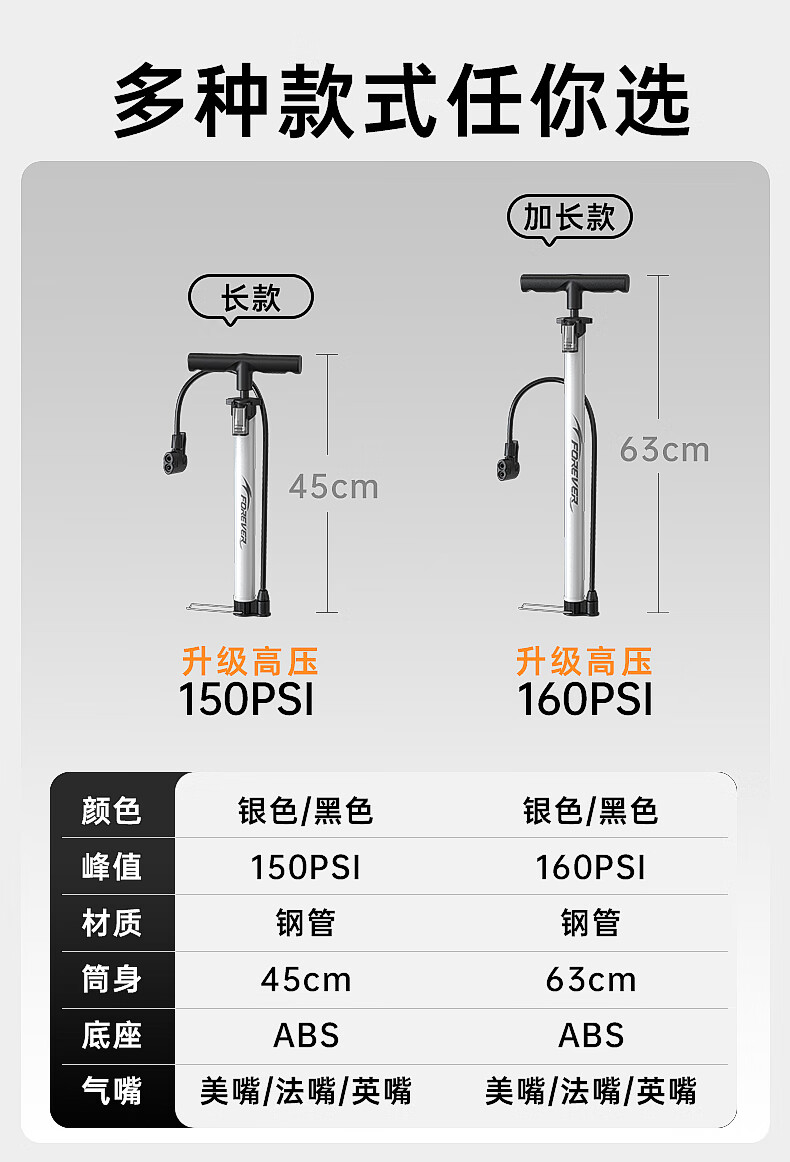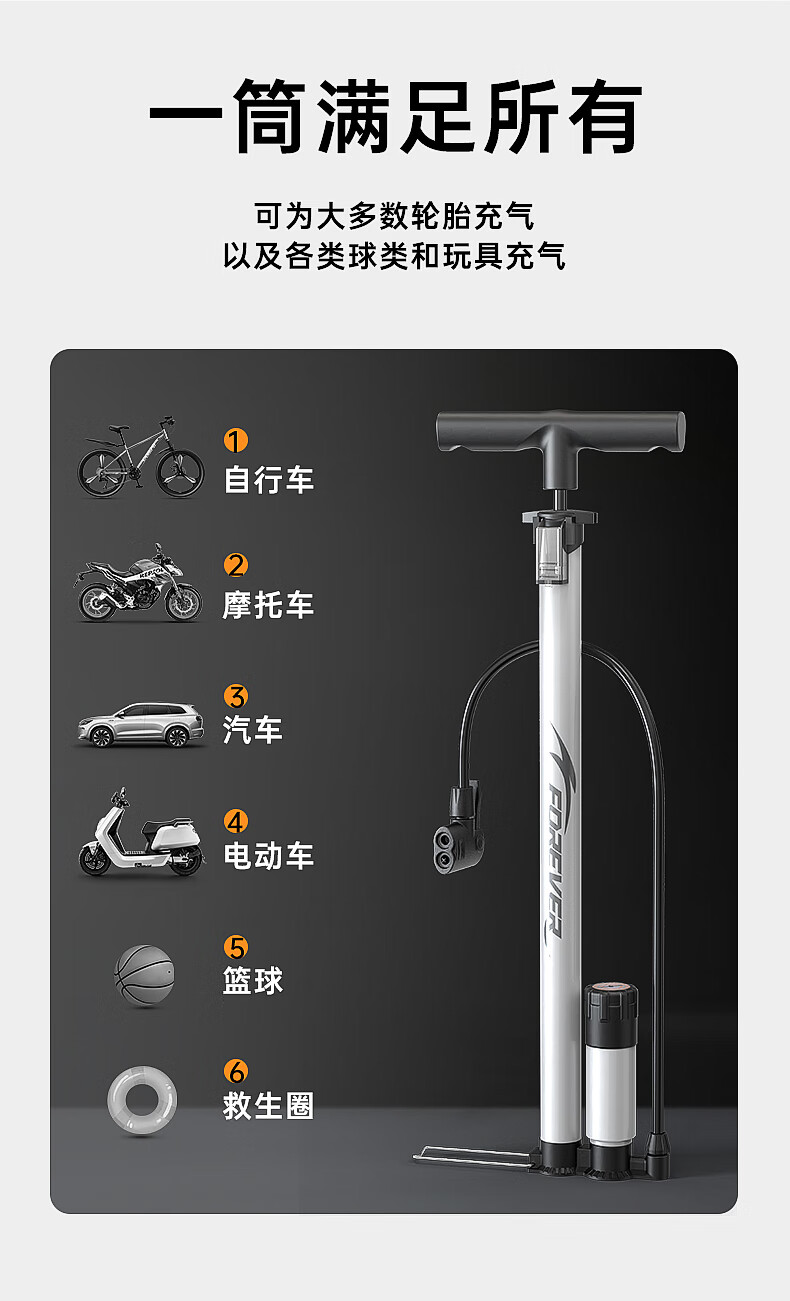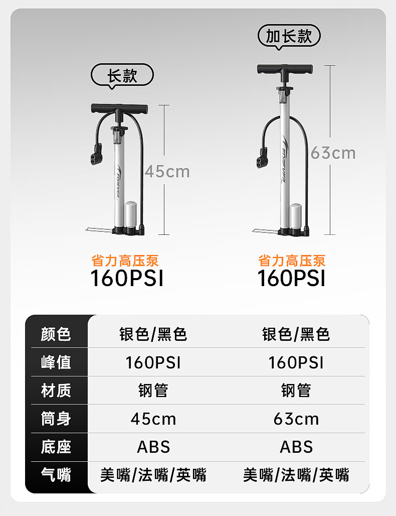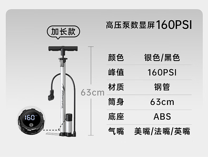 Permanent pump bicycle household electric vehicle car basketball high pressure enlarged pump 160PSI extended version - black