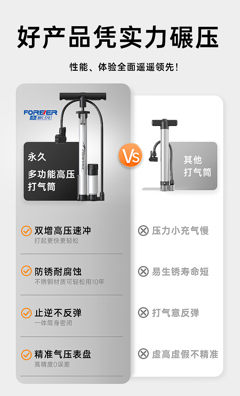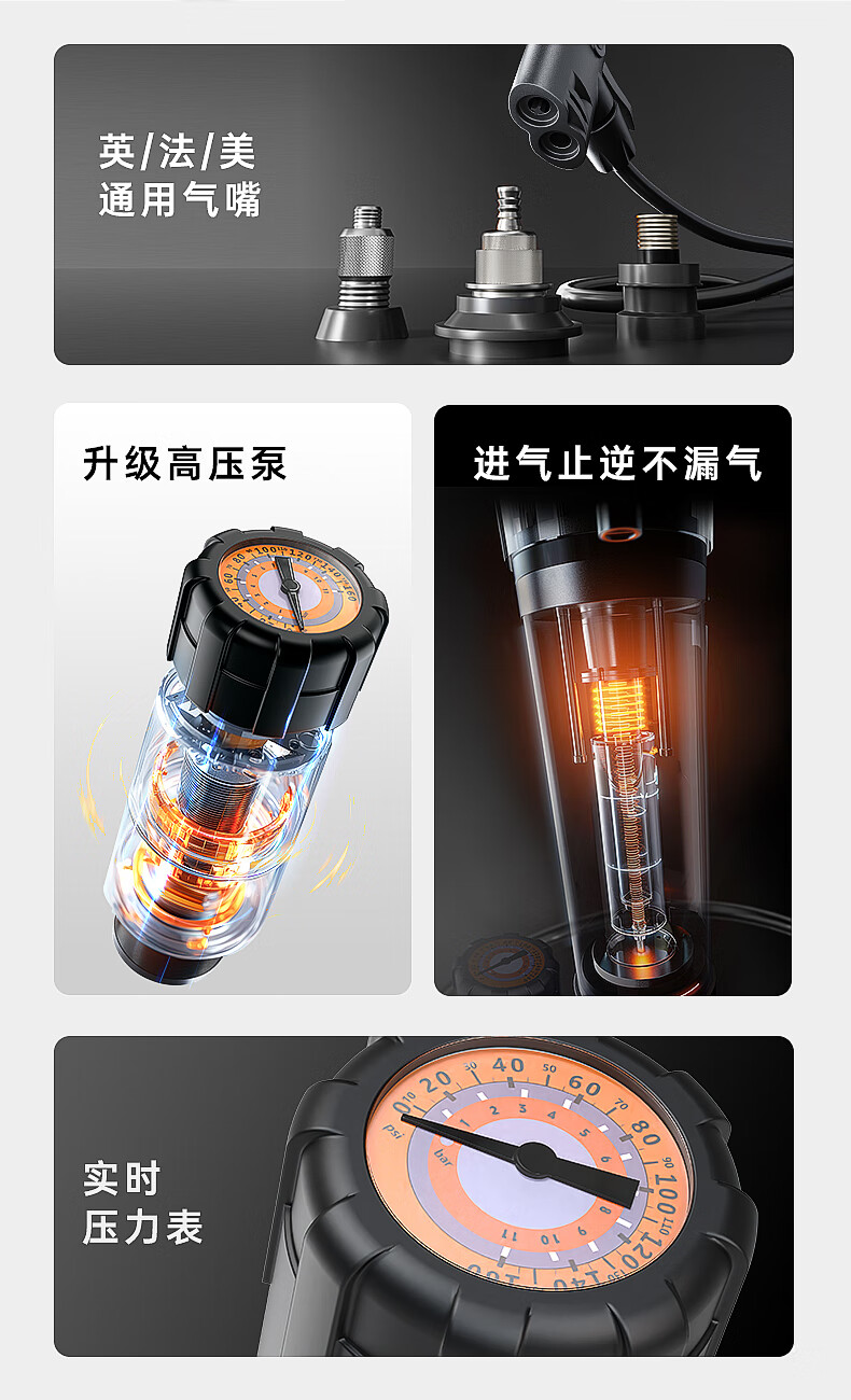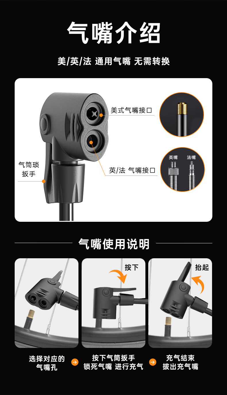 Permanent pump bicycle household electric vehicle car basketball high pressure enlarged pump 160PSI extended version - black