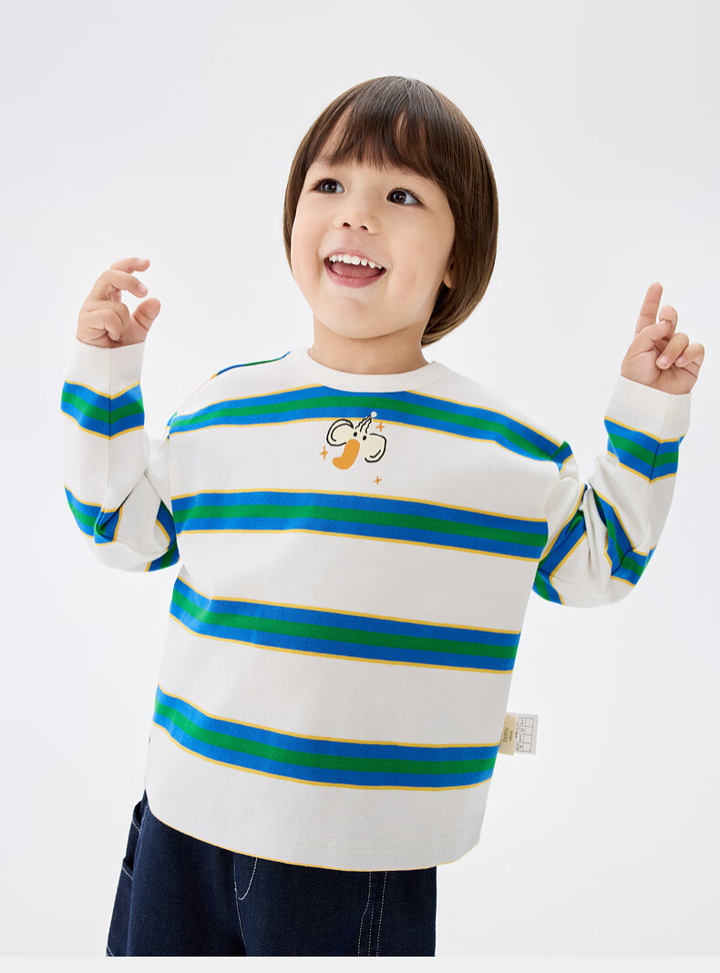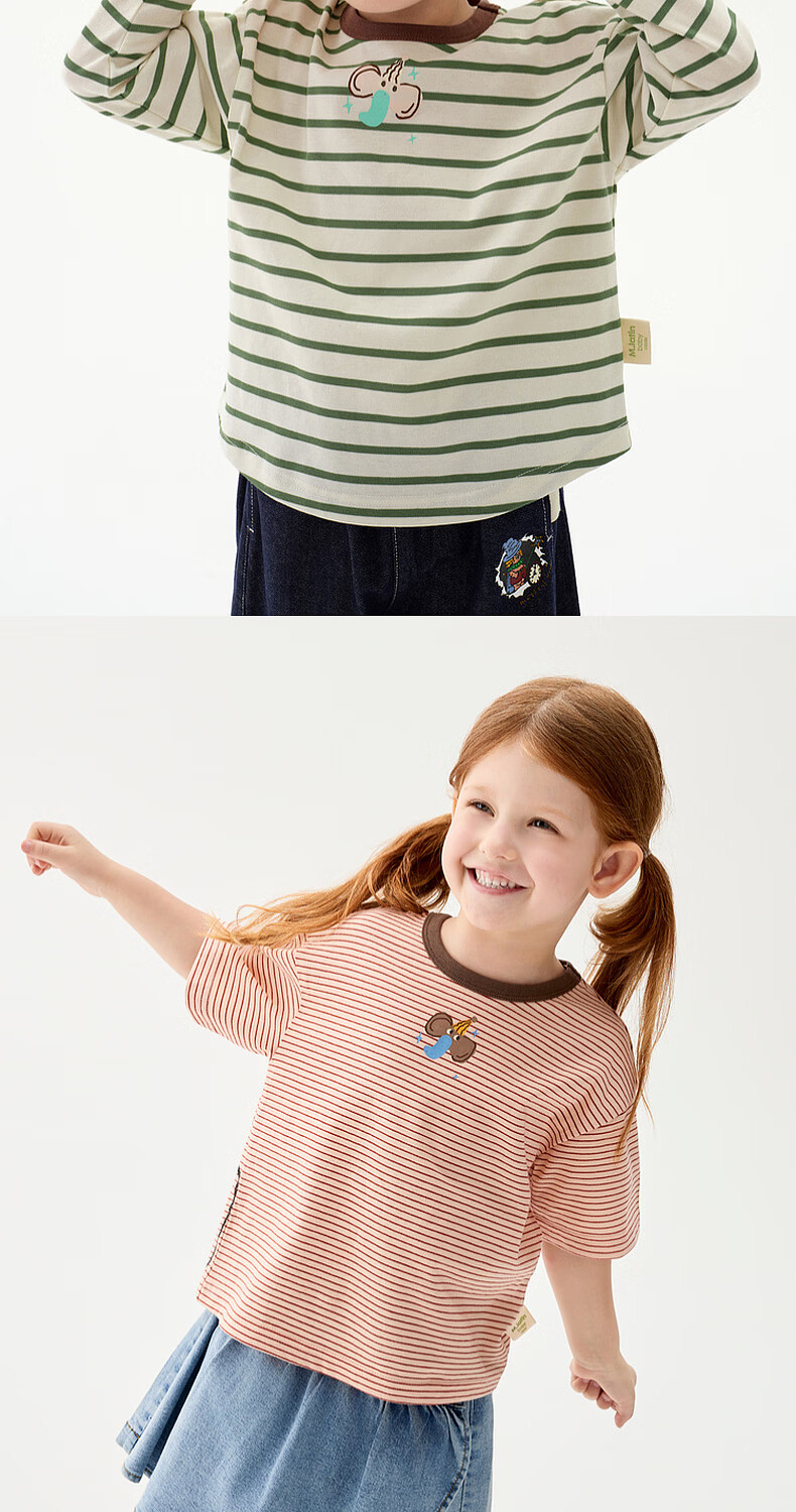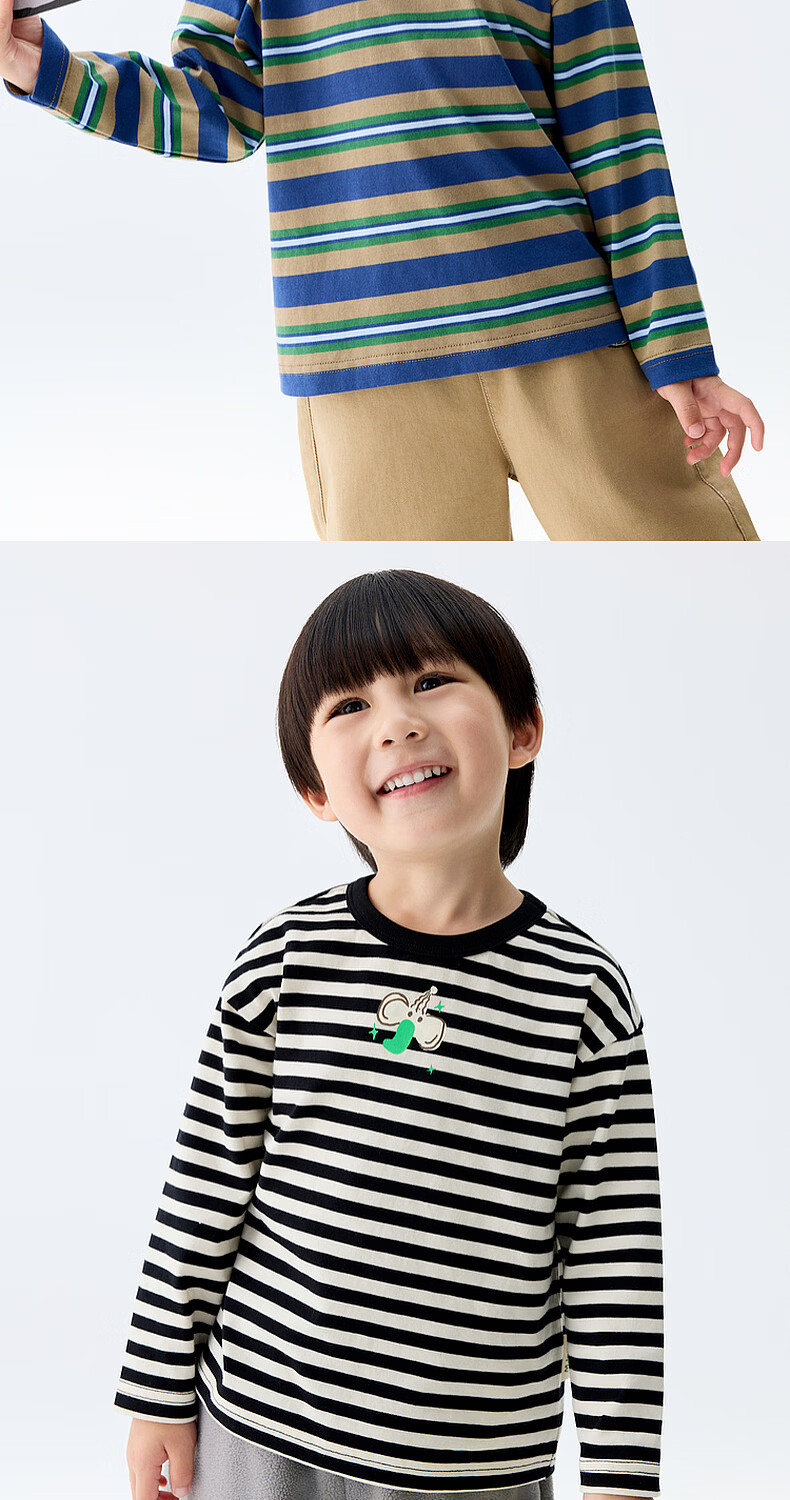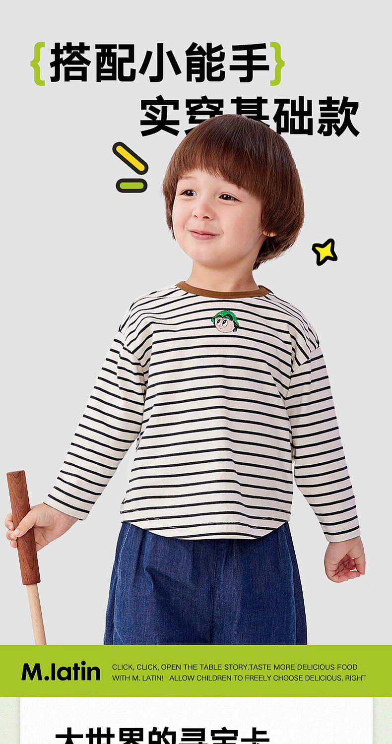 M.Latin M.Latin children's clothing for boys and girls, long-sleeved T-shirts for spring, fun prints, contrast striped bottoming shirts