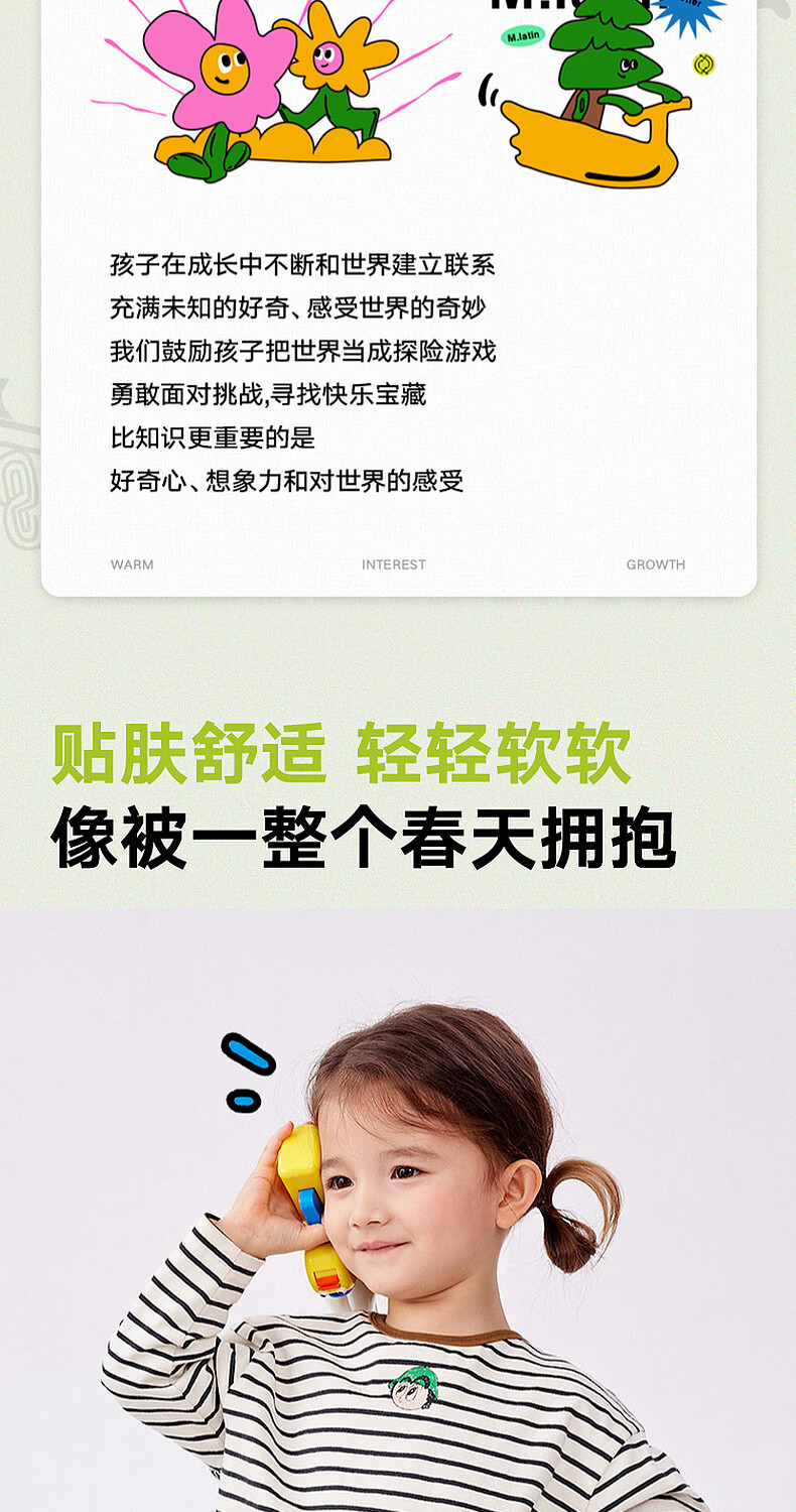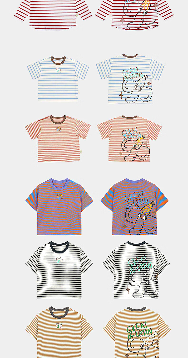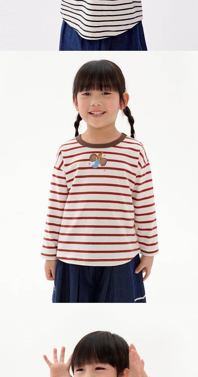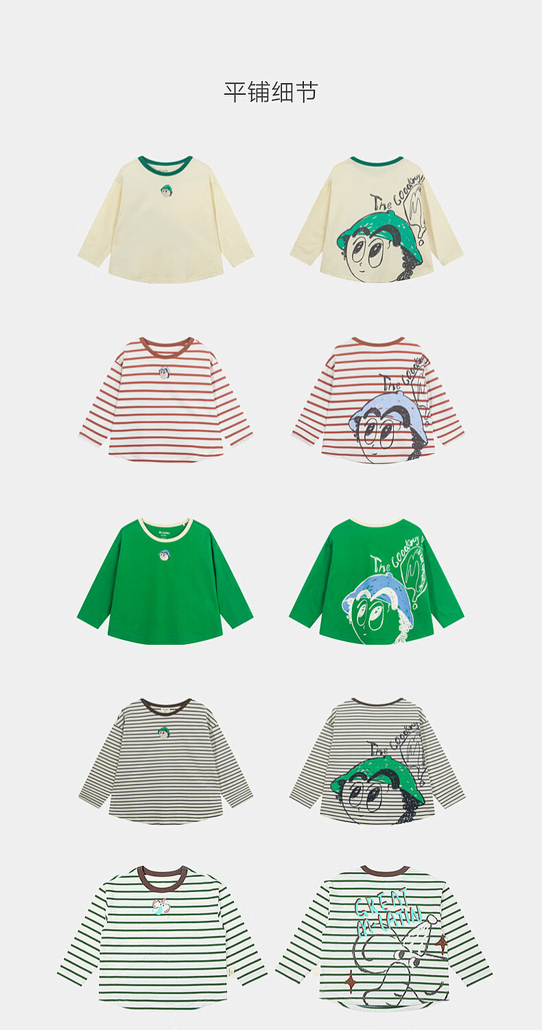 M.Latin M.Latin children's clothing for boys and girls, long-sleeved T-shirts for spring, fun prints, contrast striped bottoming shirts
