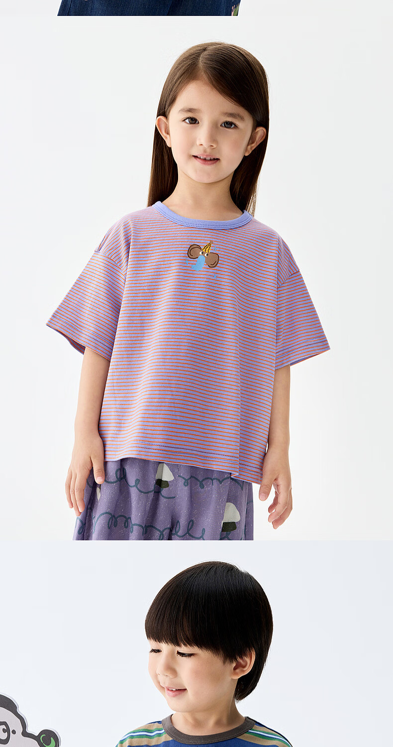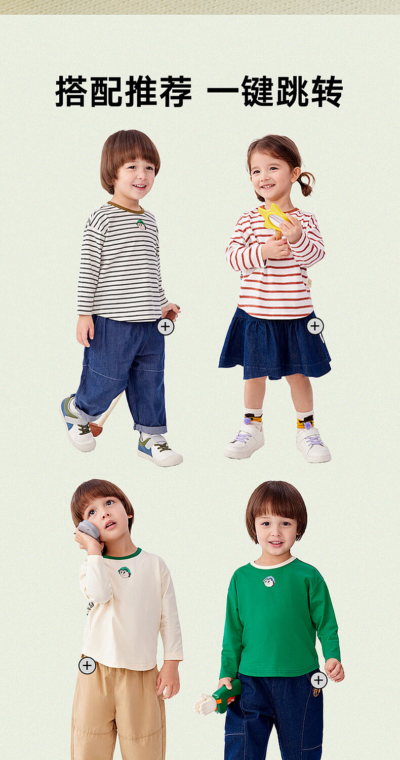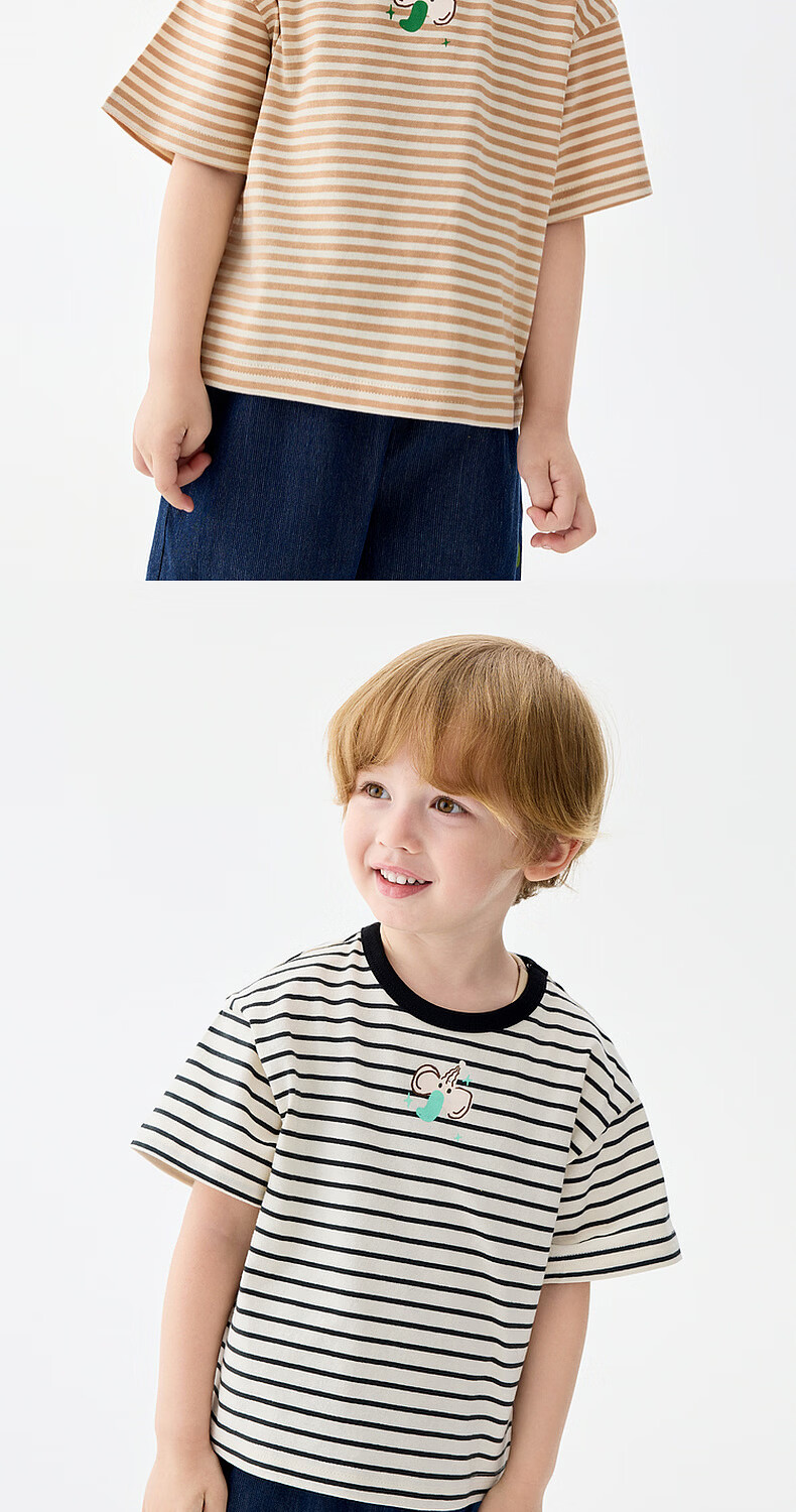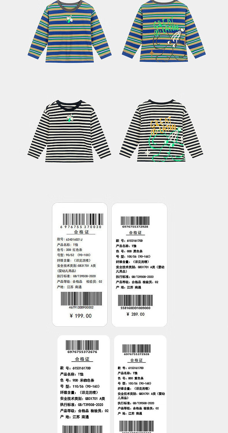 M.Latin M.Latin children's clothing for boys and girls, long-sleeved T-shirts for spring, fun prints, contrast striped bottoming shirts