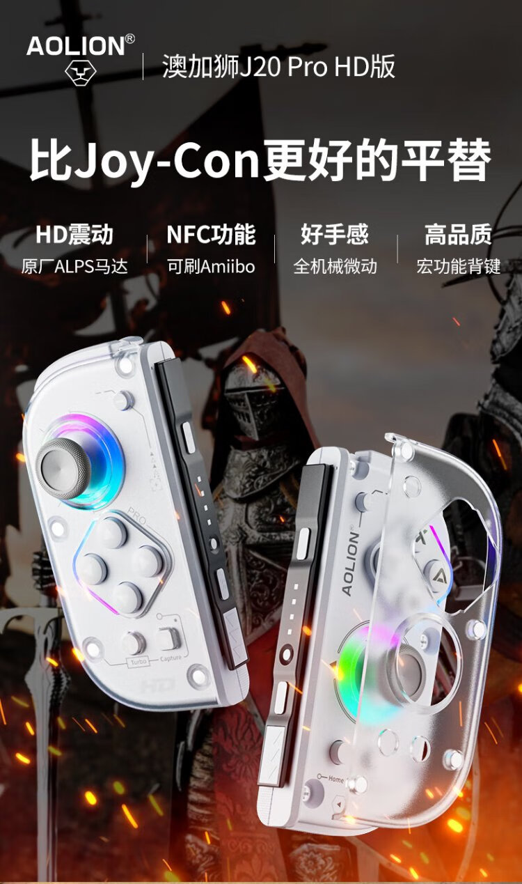 Aojia Lion J20Pro Knight Switch Controller JoyCon Split Controller HD Shock NS2 Wireless Bluetooth Macro Programming Pokémon ZA Mario Party NFC Left and Right Game Controller