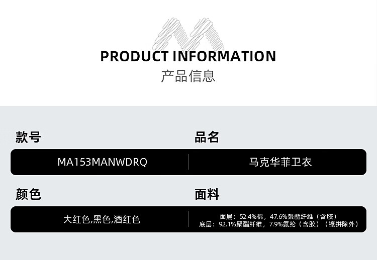 China (cm) 165 / 88-90 170 / 96-98 175 / 108-110 180 / 118-122 185 / 126-130