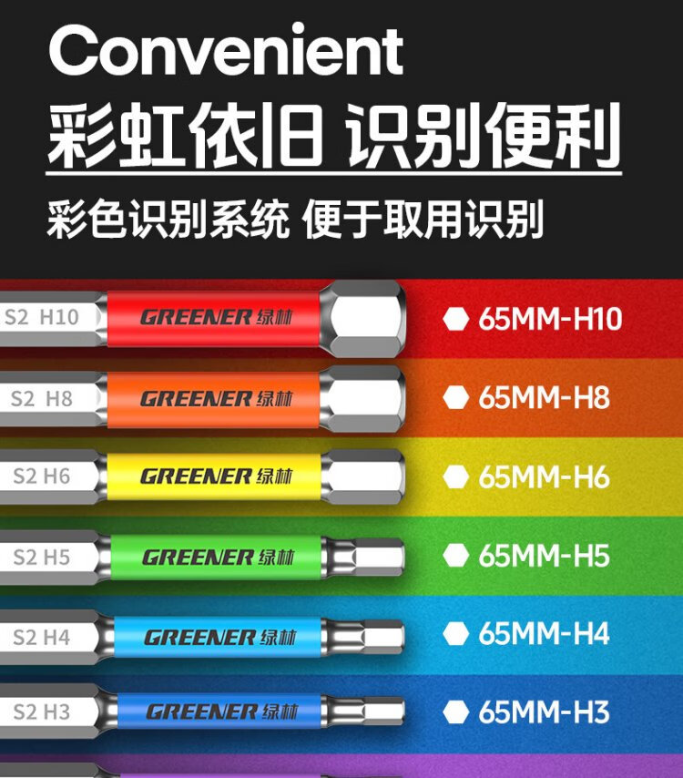 GREENER Rainbow Hexagonal Bit Strong Magnetic High Hardness Electric Screwdriver Hand Drill Driver Hexagonal Bit Set