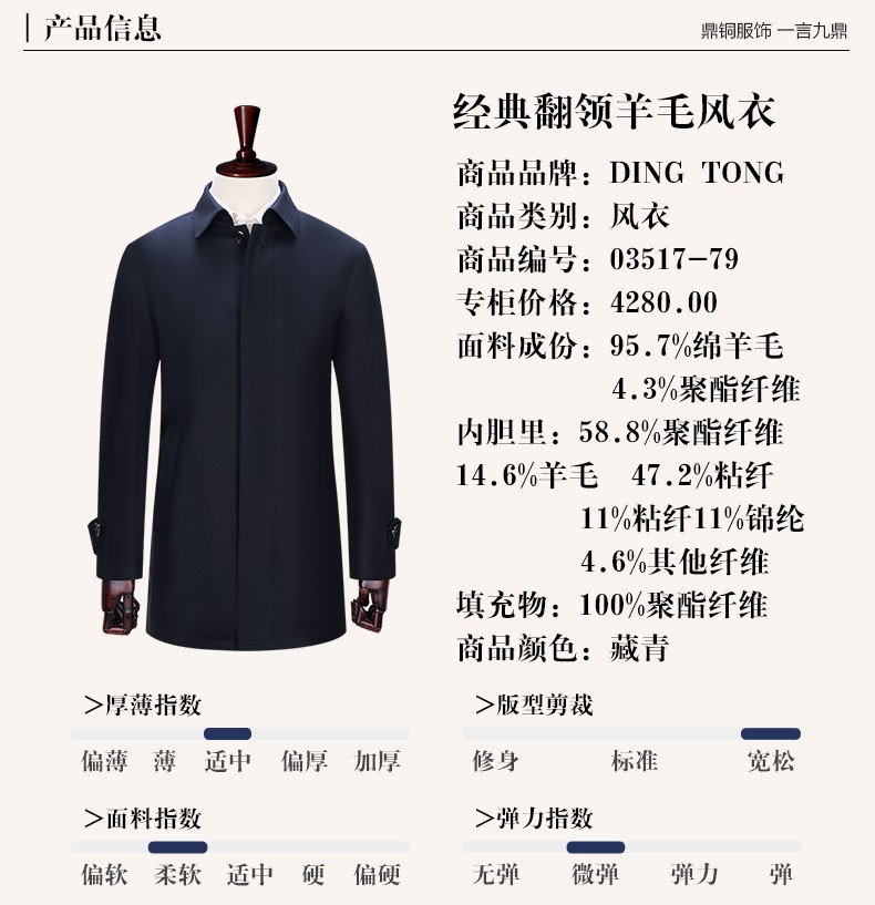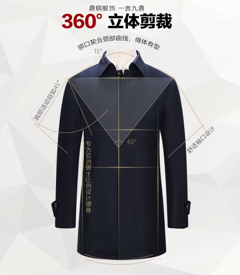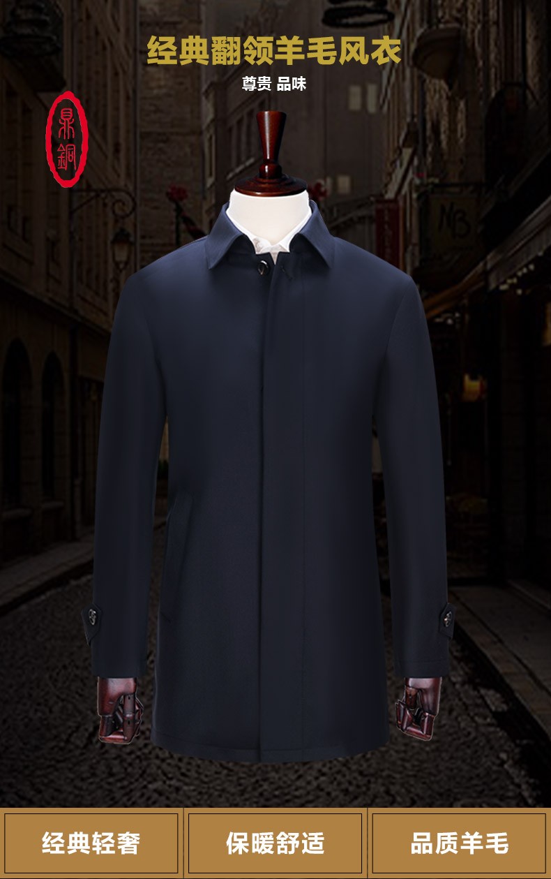 Ding Tong Wool Jacket Mid-Length Lapel Lapel Business Casual Solid Color Loose Windbreaker Men's Liner Autumn and Winter Men's New Product Navy Blue 185