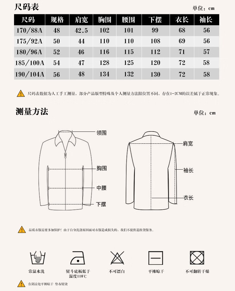 China (cm) 160-165/84-86 165-170 / 88-90 167-172 / 92-96 168-173 / 98-102 170-176 / 106-110