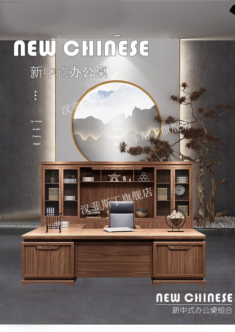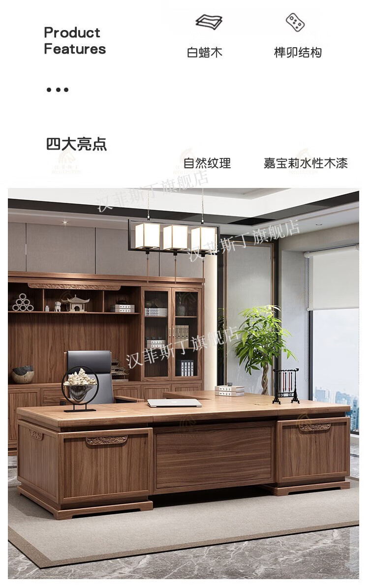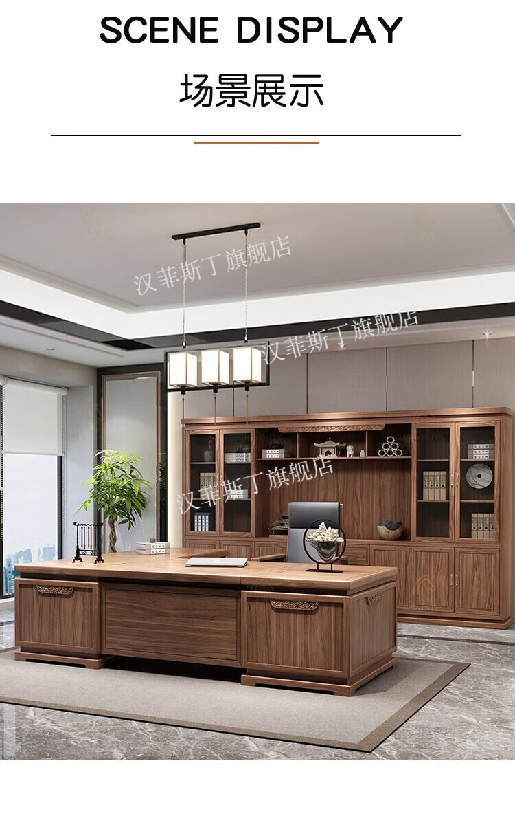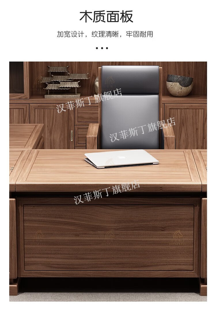 HONFSTIN solid wood desk boss desk and chair combination new Chinese style executive desk president desk simple modern office furniture 2 meter desk + side cabinet