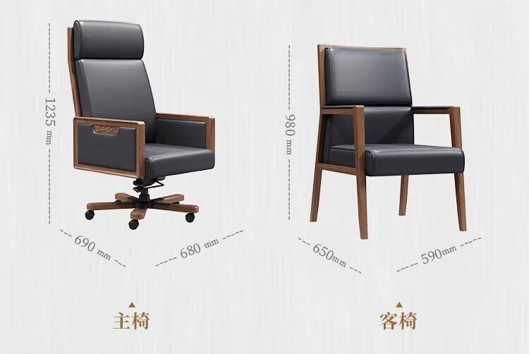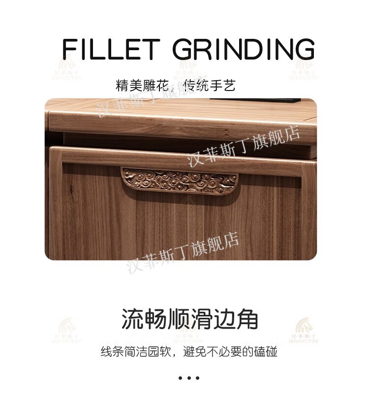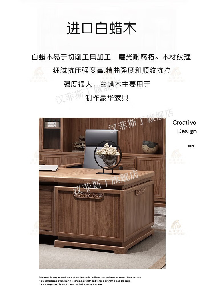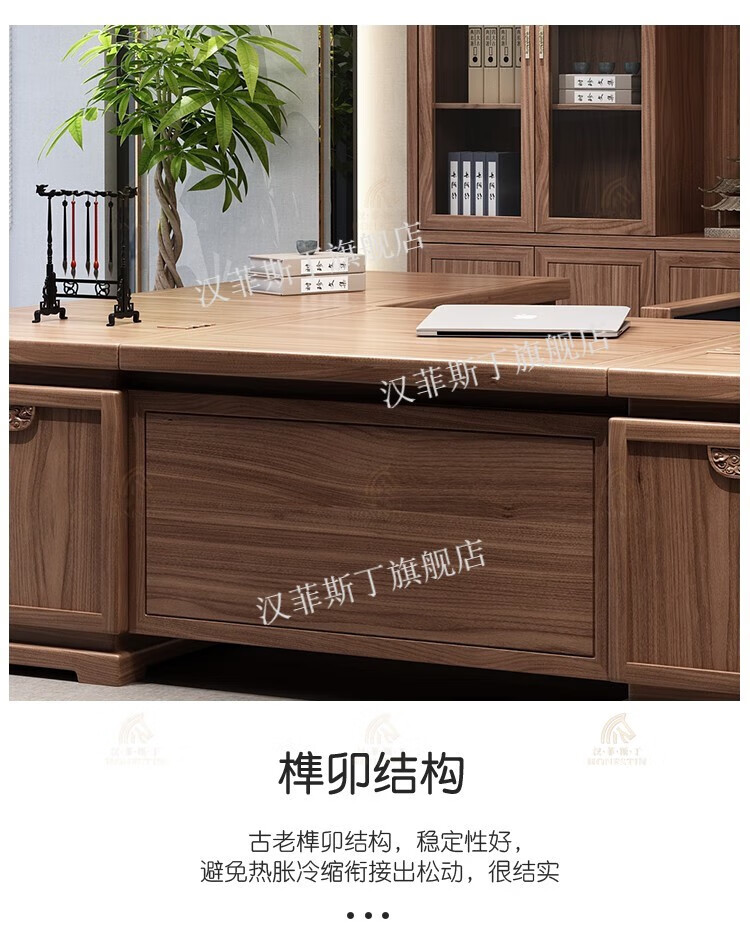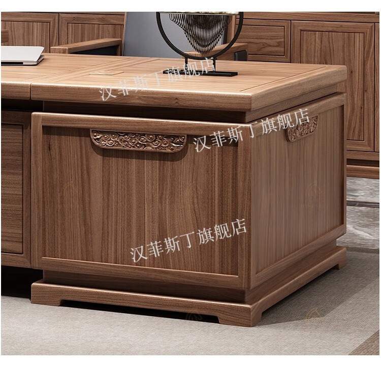 HONFSTIN solid wood desk boss desk and chair combination new Chinese style executive desk president desk simple modern office furniture 2 meter desk + side cabinet
