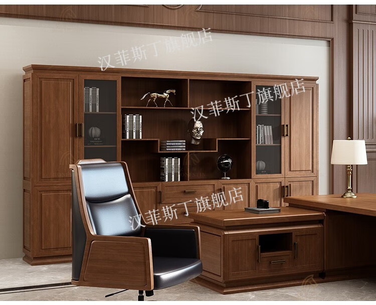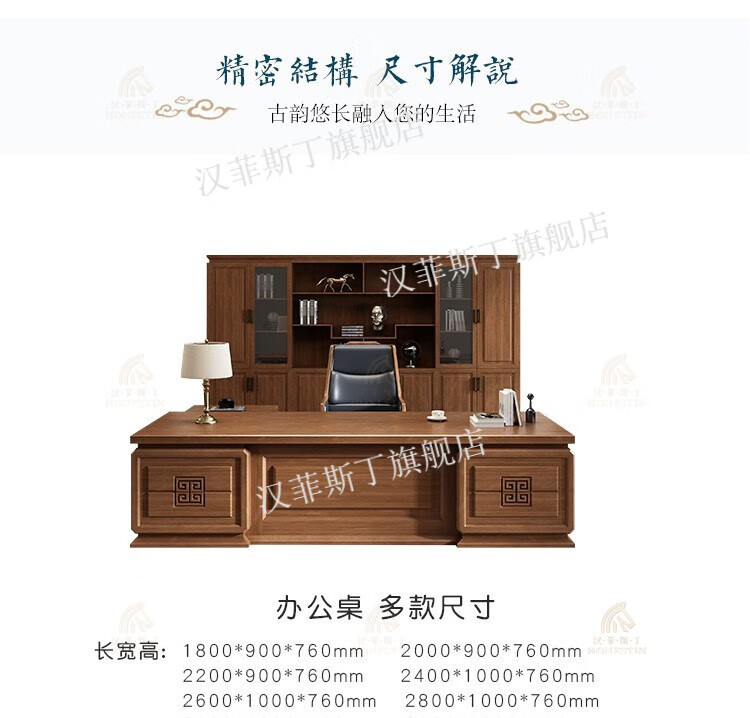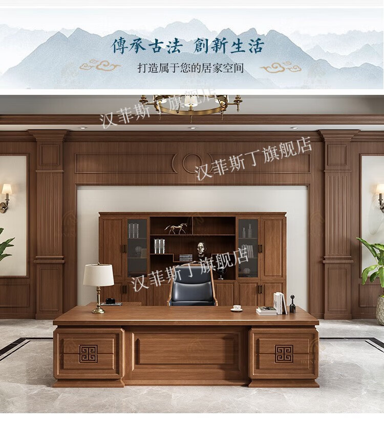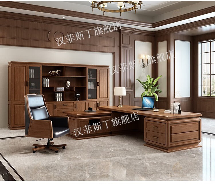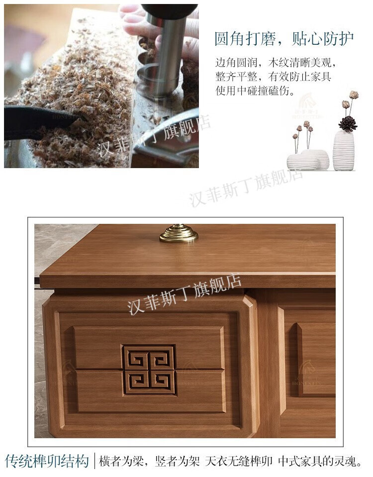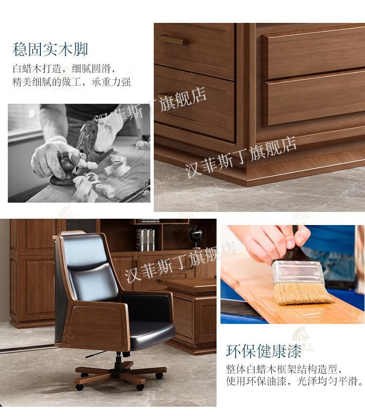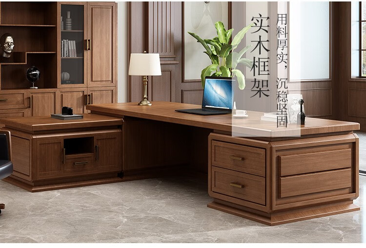 Han Feisting desk boss table solid wood office desk and chair combination executive desk new Chinese style bookcase general manager office furniture 2.0 meters boss table + side table
