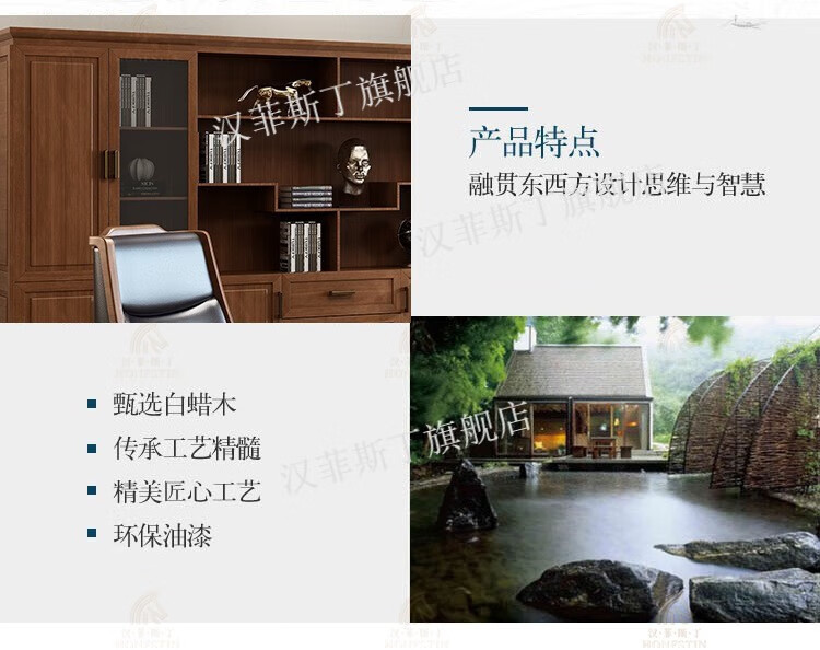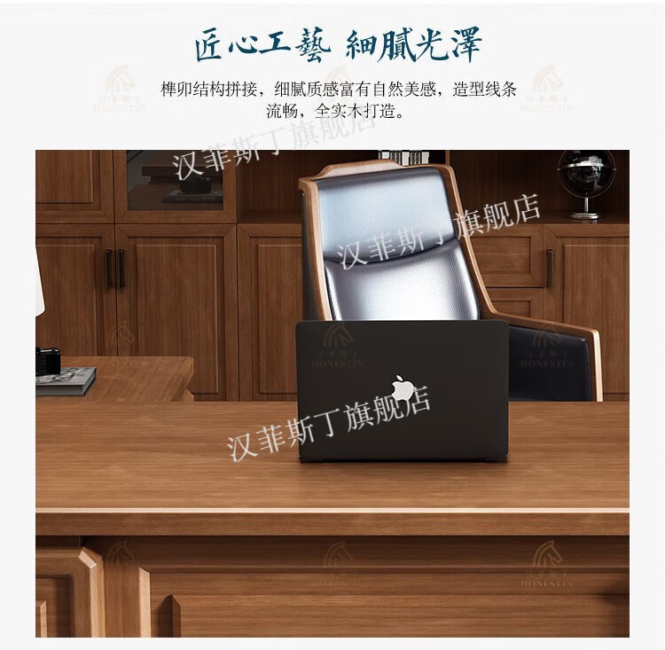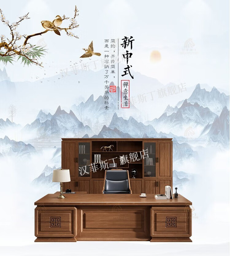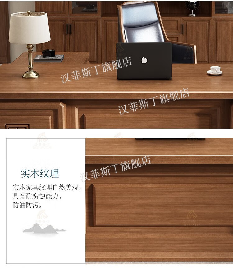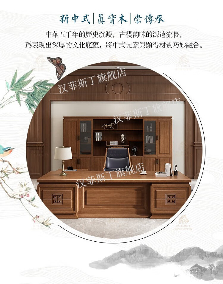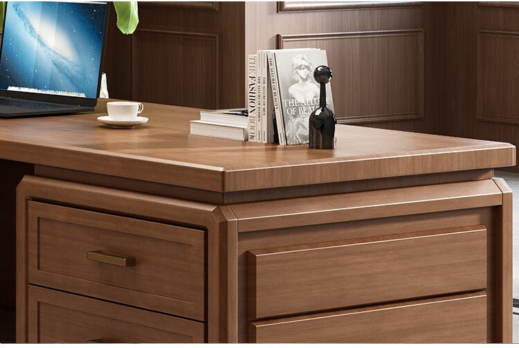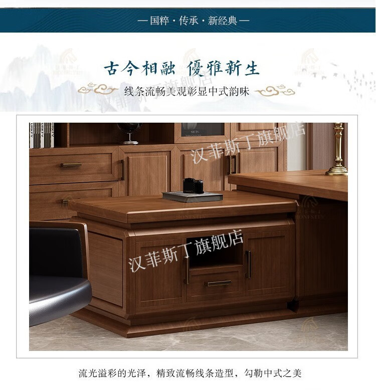 Han Feisting desk boss table solid wood office desk and chair combination executive desk new Chinese style bookcase general manager office furniture 2.0 meters boss table + side table