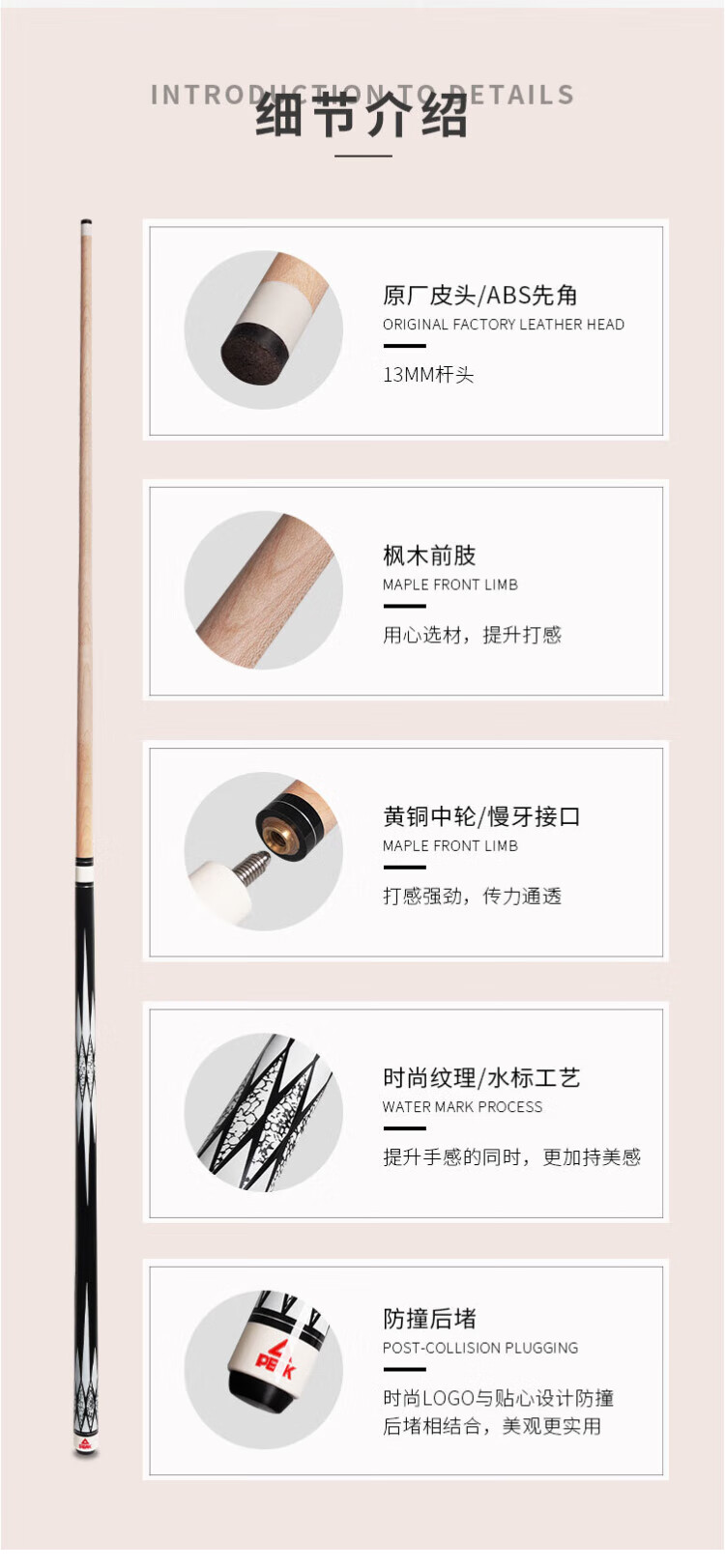 Peak billiard cue OCC1/2 split big head Chinese style black 8 billiard cue Mengbai 13mm cue box set