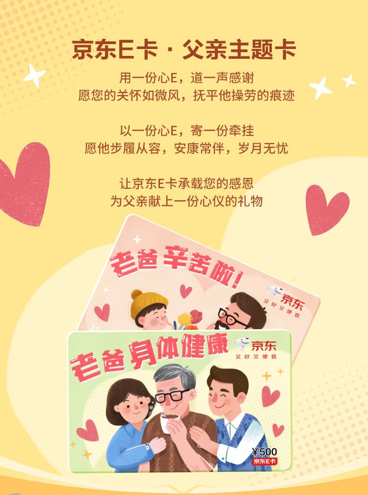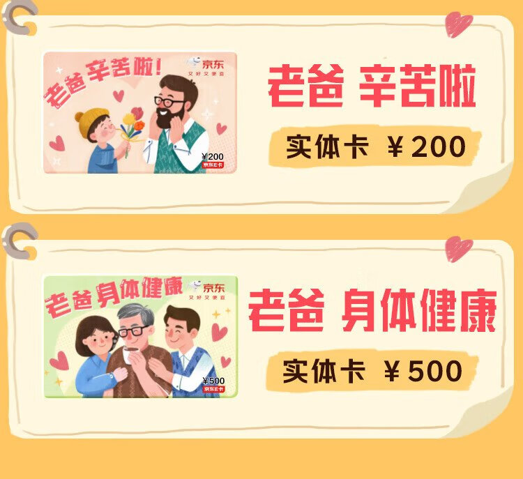 Jingdong E Card Father's Day theme card 200 face value (physical card) official self-operated gift card/shopping card/pickup card/gift/gift/gift to dad