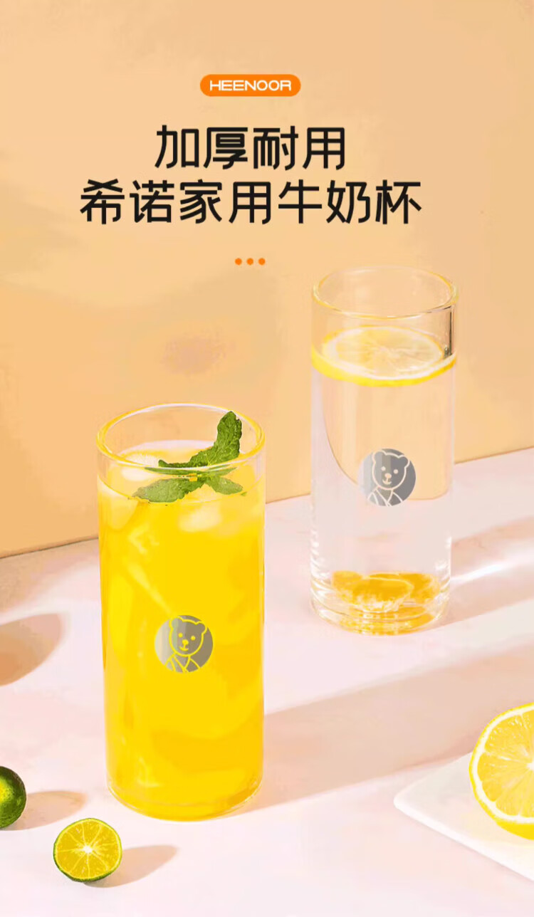Heenoor single-layer glass milk cup juice cup household drinking cup high temperature resistant high borosilicate transparent cup 445ML