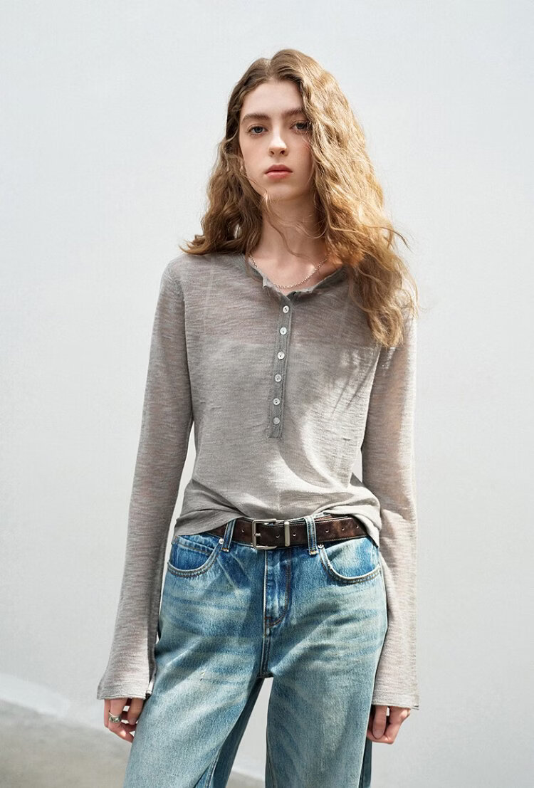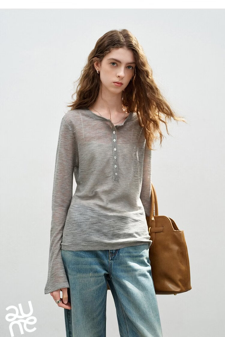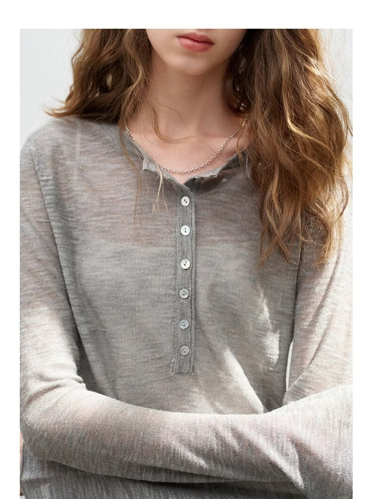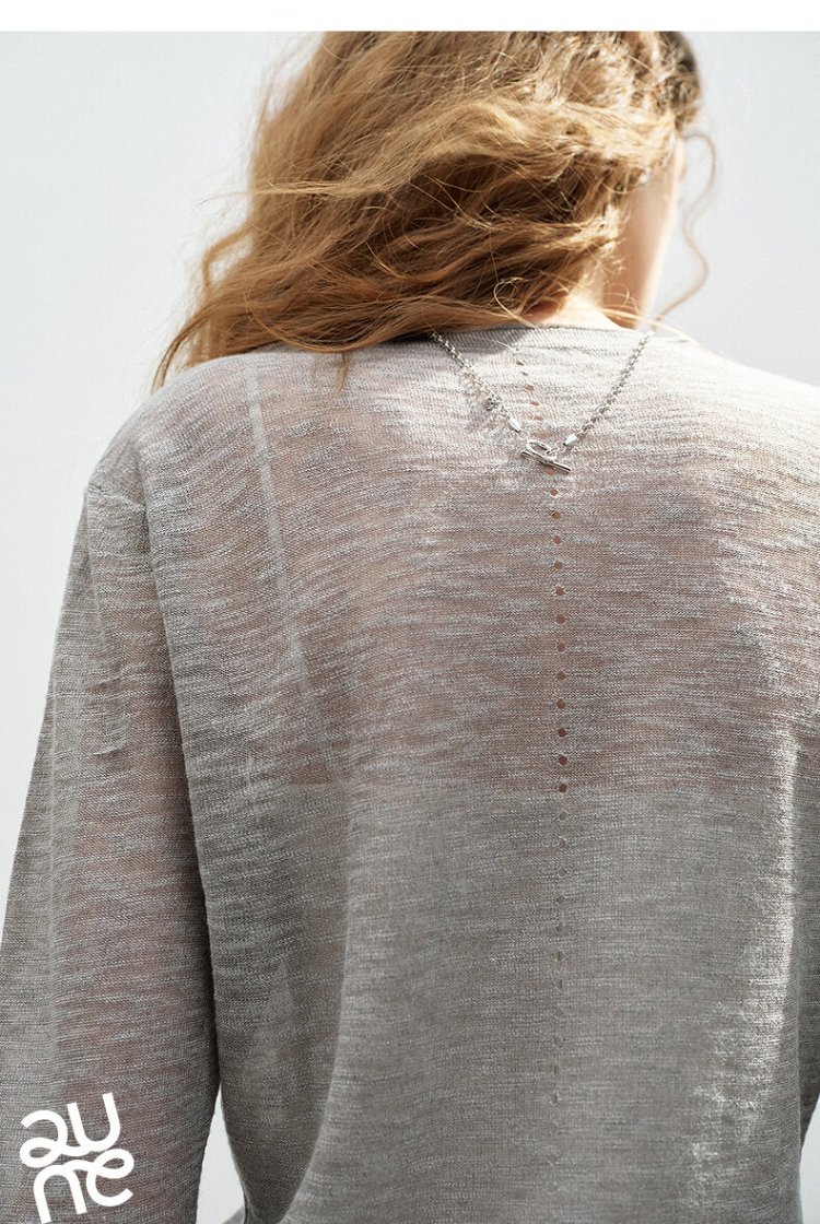 Chuyu slub linen sweater for women 2026 spring new style hollow weaving light and slightly see-through slim fit top Beige S