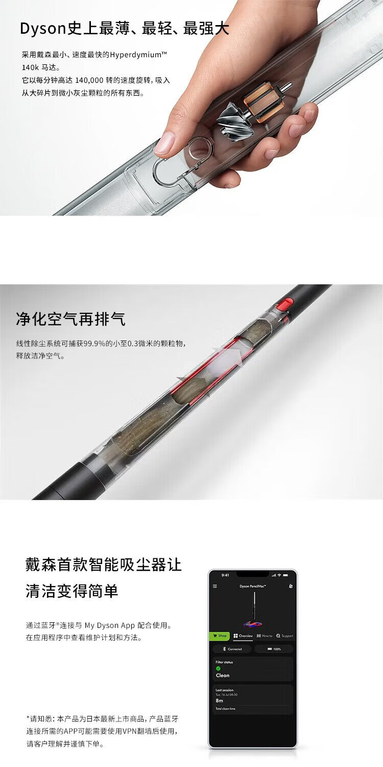 Dyson PencilVac Pencil Vacuum Cleaner Original Imported Authentic Ultra-Light Handheld Wireless Home Super Powerful Suction Optical Dust Display Can Be Car Mounted New Year Gift