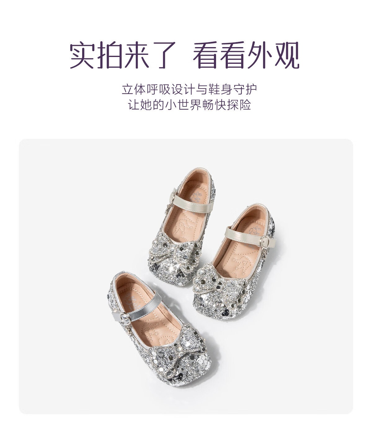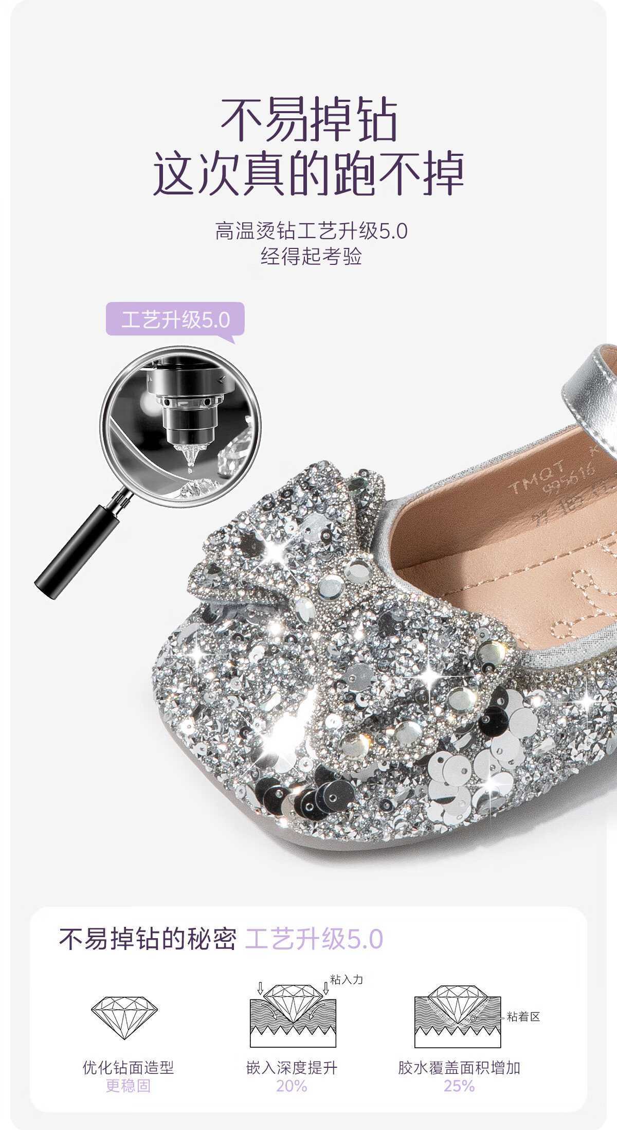 Tongmeng Sunny Girls Princess Shoes Sparkling Children's Crystal Shoes 2026 Spring New Girls Elsa Small Leather Shoes with Dress Shoes