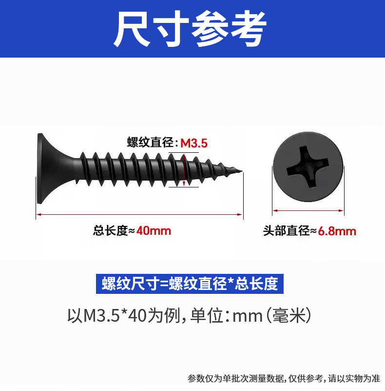 Tianli wall panel self-tapping screws cross countersunk head black carpentry flat head plus hard gypsum board dry wall nail wood screws wall panel self-tapping screws M3.5*35 (200 pieces)