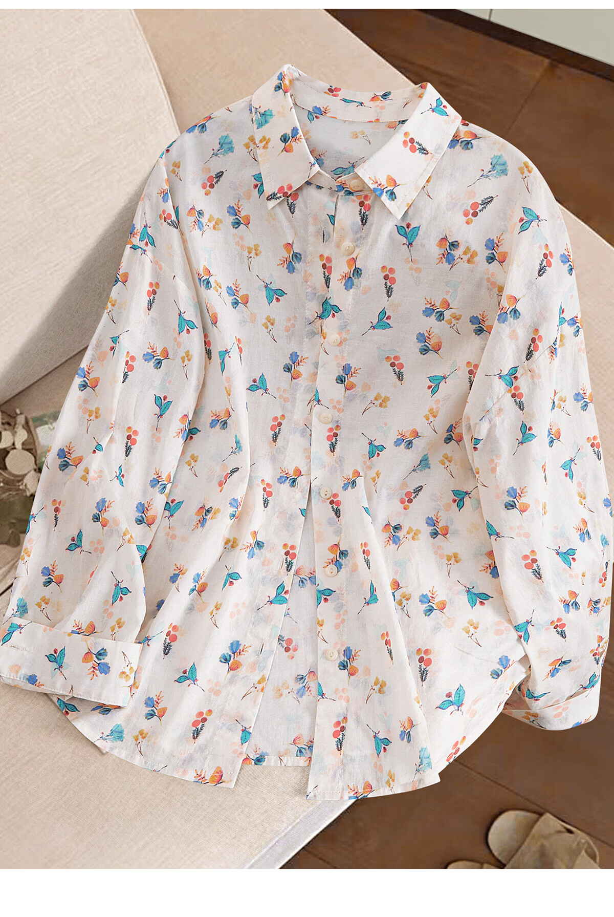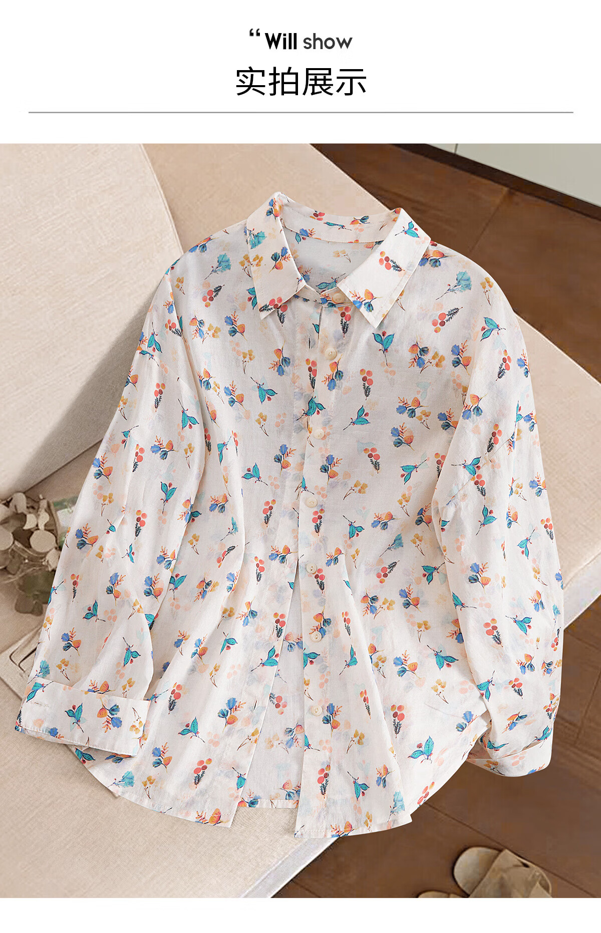 Shechi Xiao fresh lapel floral shirt women's 2026 spring new Hong Kong style loose long-sleeved shirt