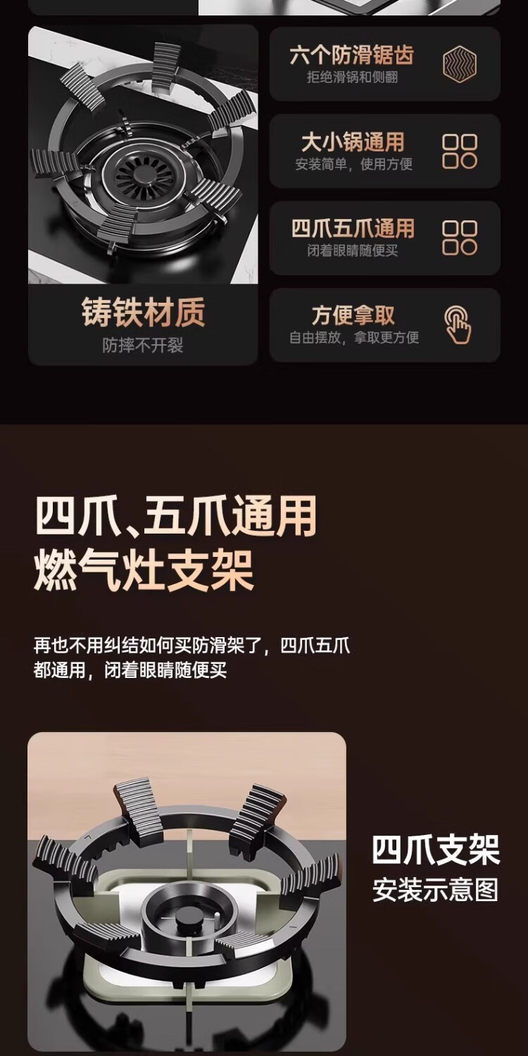 PINYU gas stove bracket anti-slip small pot rack stove bracket pot rack cast iron thickened four-claw and five-claw universal cooking rack