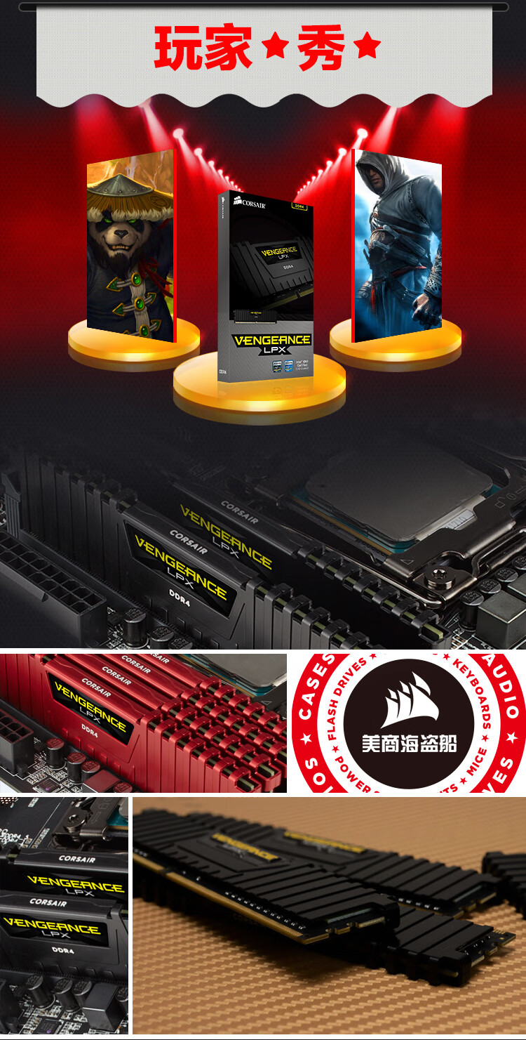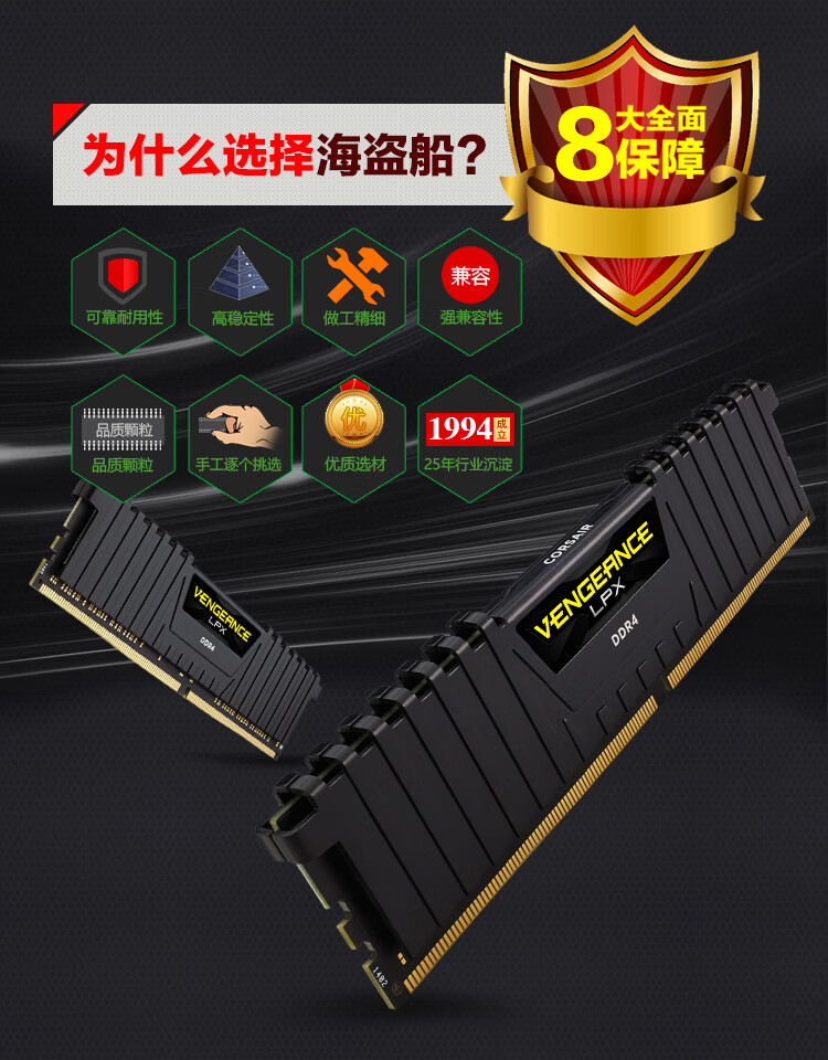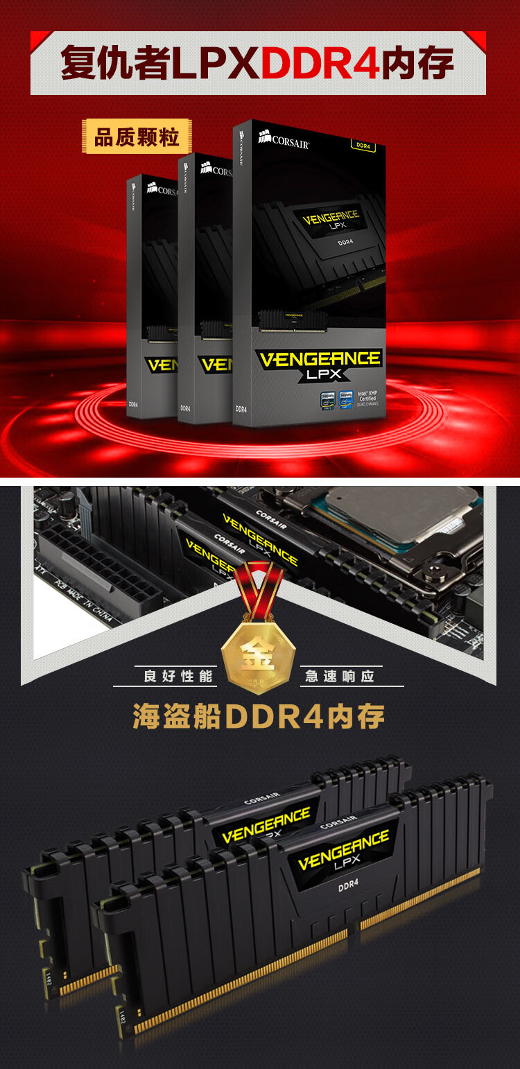 USCORSAIR DDR4 PC4 UDIMM Vest XMP Overclocking Gaming Esports DIY Installation Upgrade Fourth Generation Desktop Memory Avengers LPX Series DDR4 3000 Black 8GB 1 Single
