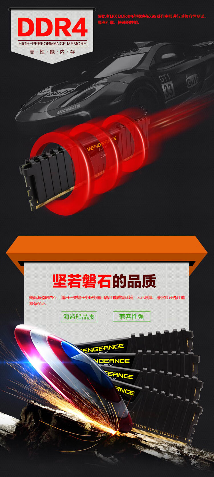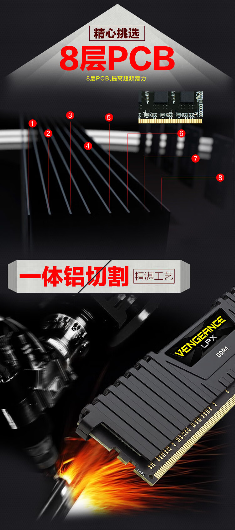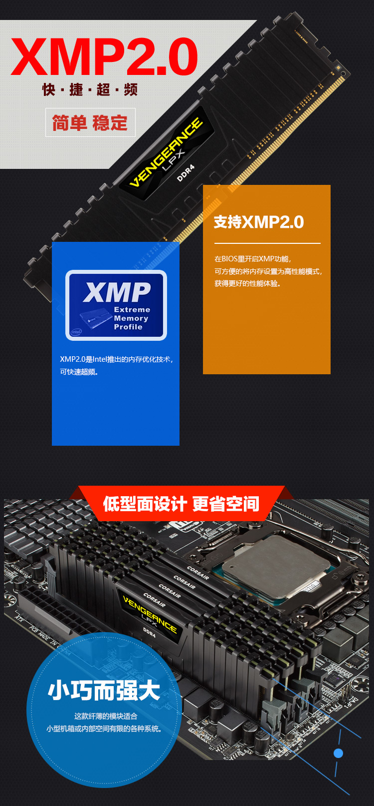 USCORSAIR DDR4 PC4 UDIMM Vest XMP Overclocking Gaming Esports DIY Installation Upgrade Fourth Generation Desktop Memory Avengers LPX Series DDR4 3000 Black 8GB 1 Single