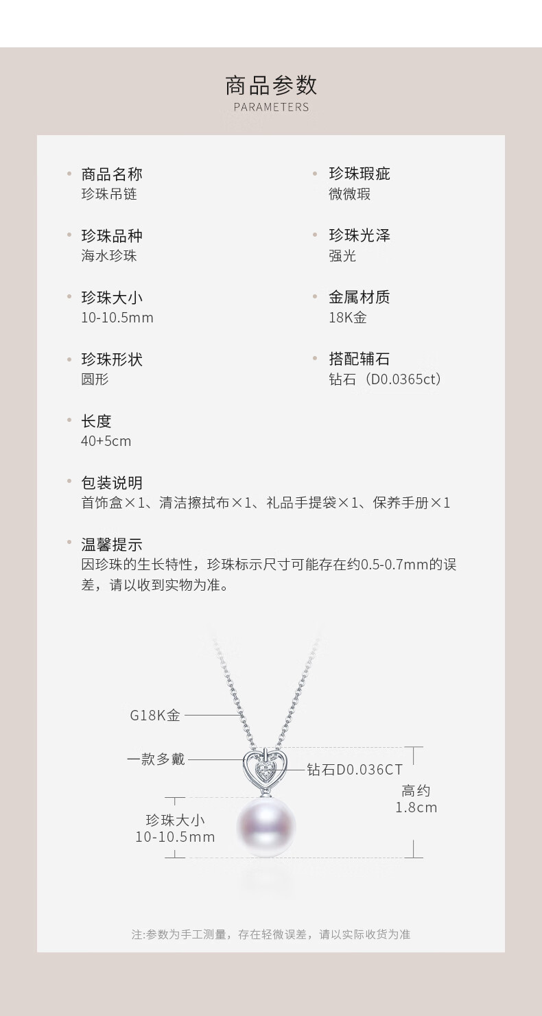Jingrun Pearl Necklace Yixin 18K Gold Australian White Seawater Pearl Pendant Diamond Necklace New Gift for Mom and Girlfriend