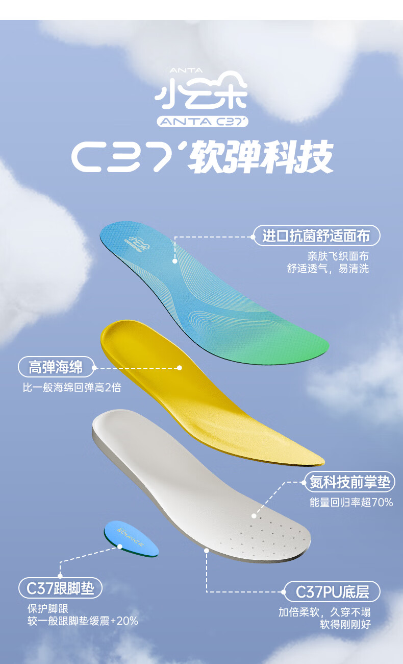 ANTA insole C37+ insole sports running basketball shock-absorbing small cloud arch support insole 1824551591
