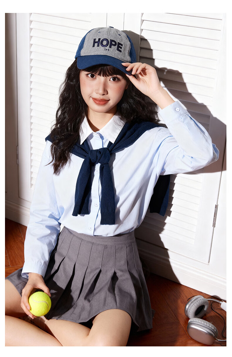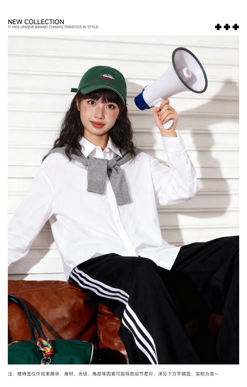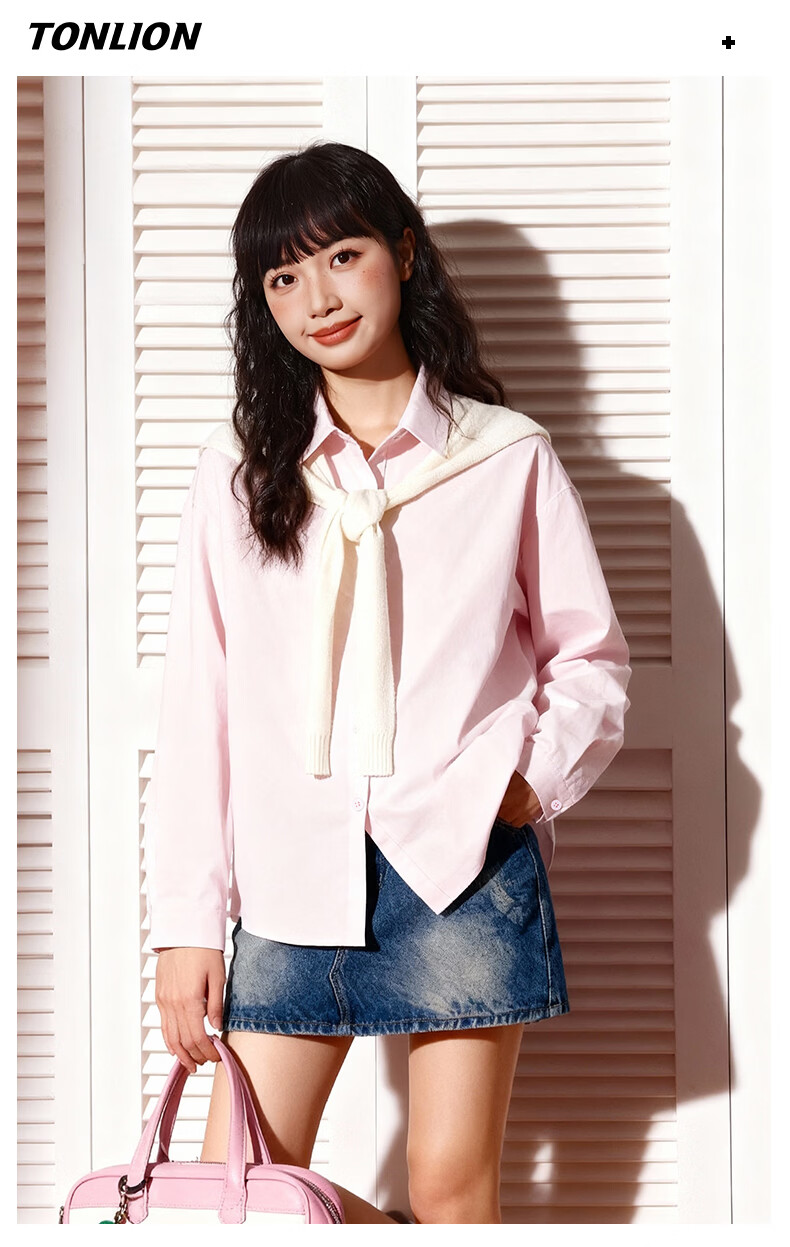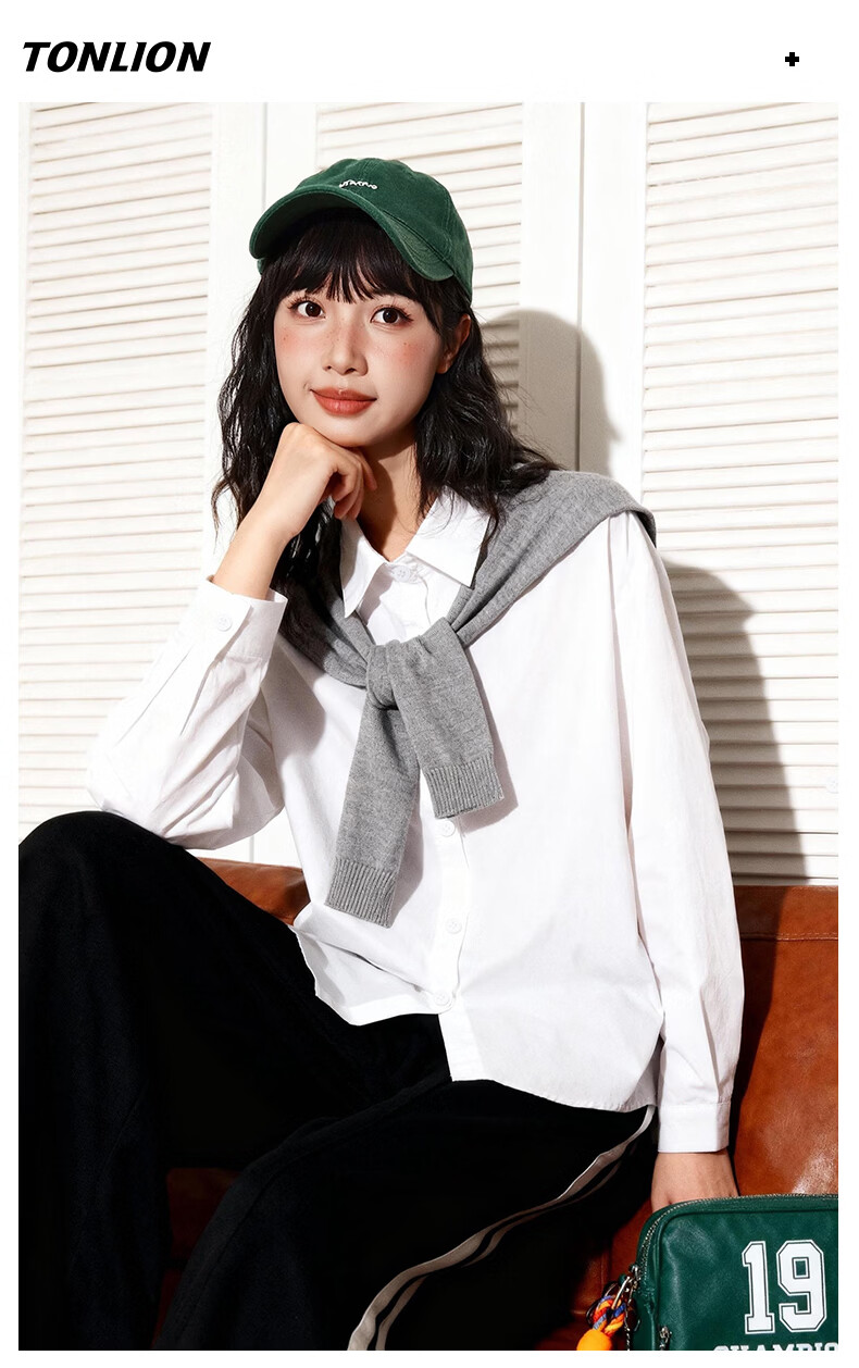 TonLion pure cotton long-sleeved shirt women's spring and autumn new trendy shawl contrasting color design loose slimming tops for women