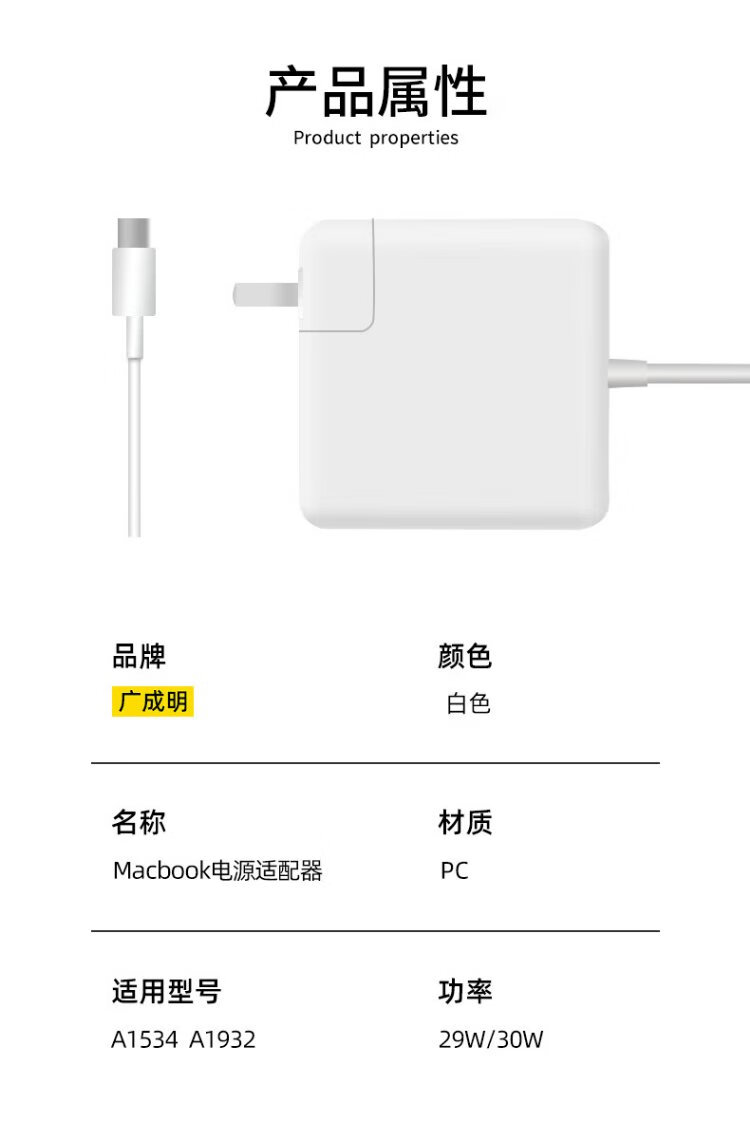 Guangchengming Apple laptop charger Type-C cable set USB-C PD29W/30W MacBook Pro/Air power adapter A1534 A1932
