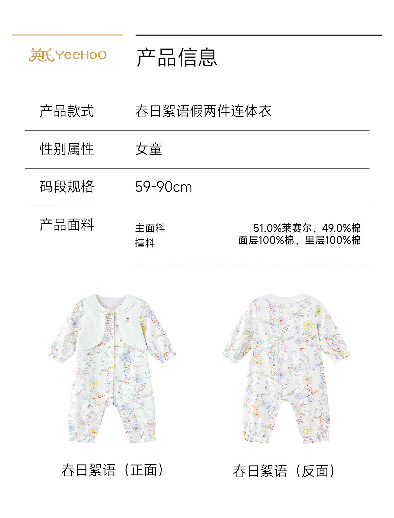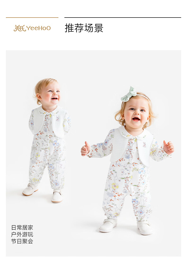 YEEHOO shopping mall same style YEEHOO baby clothes long-sleeved baby girl large floral fake vest fake two-piece going out clothes