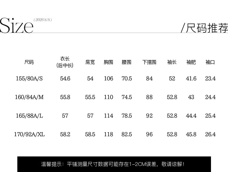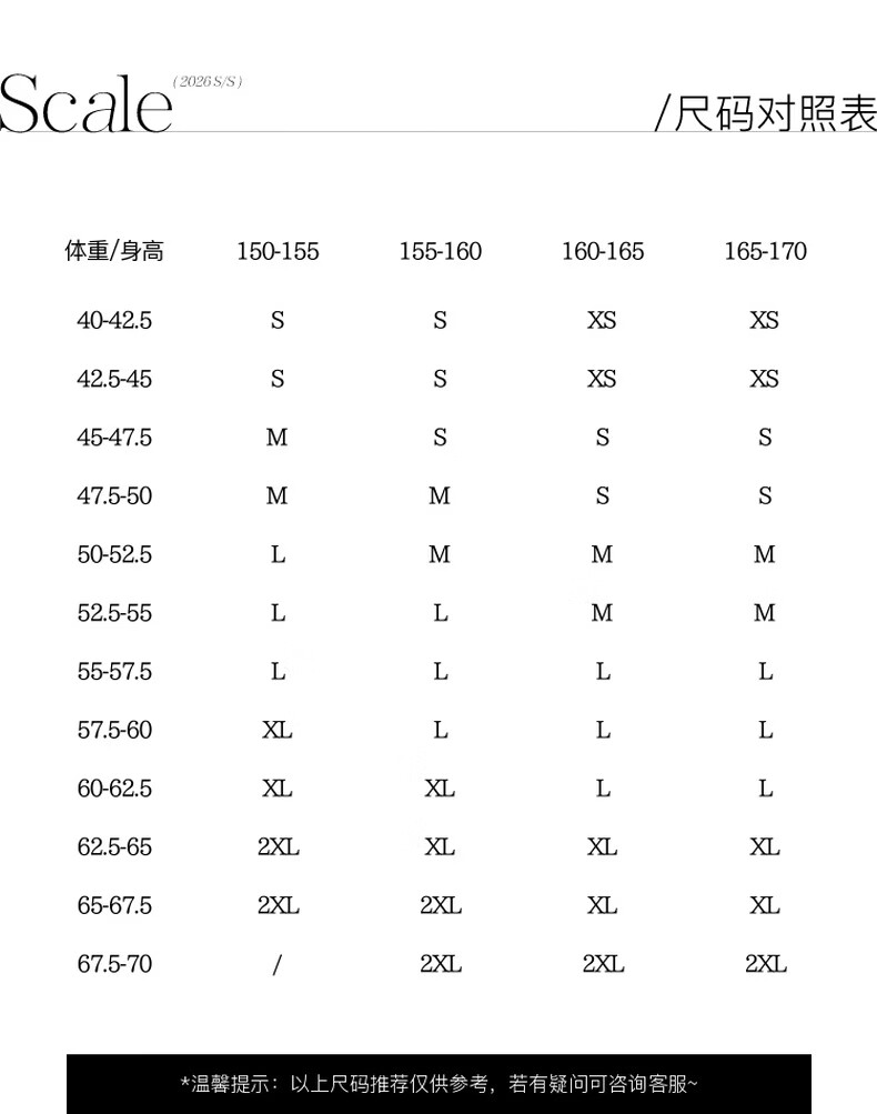 China (cm) 160-165/84-86 165-170 / 88-90 167-172 / 92-96 168-173 / 98-102 170-176 / 106-110