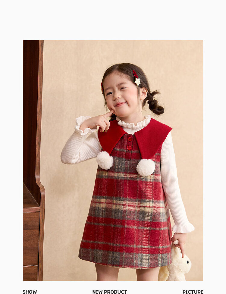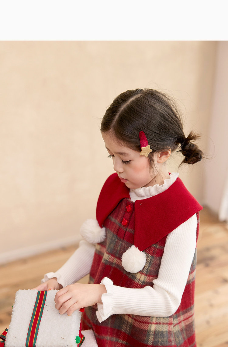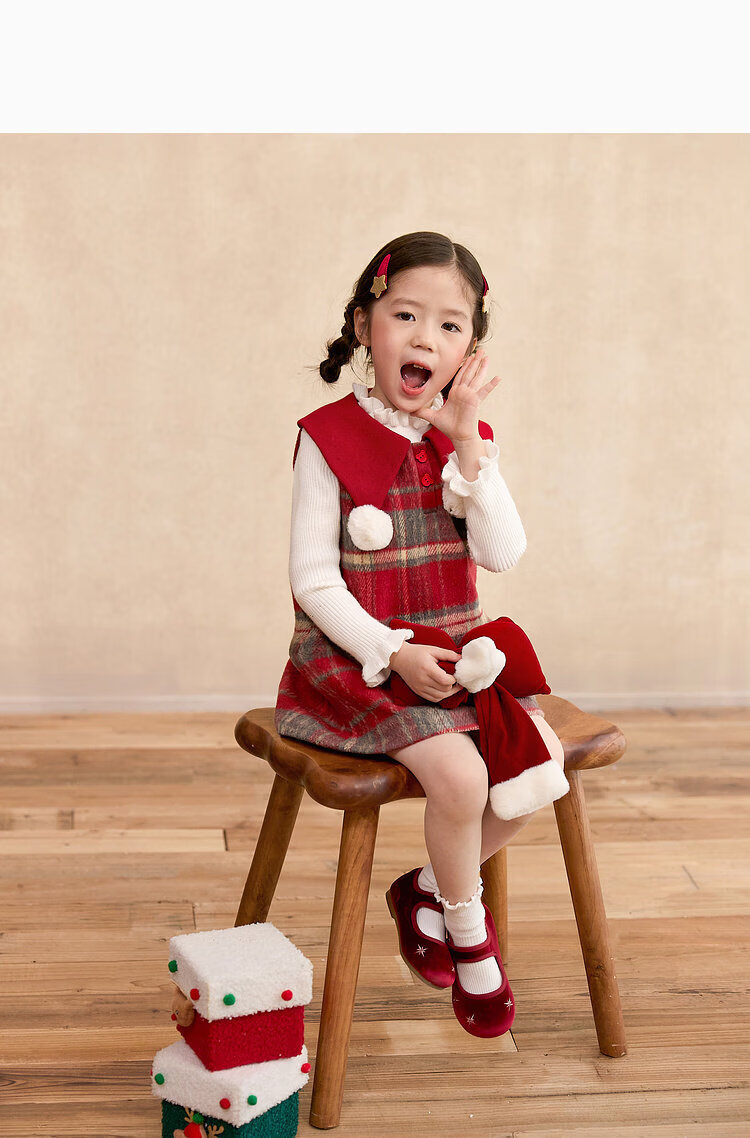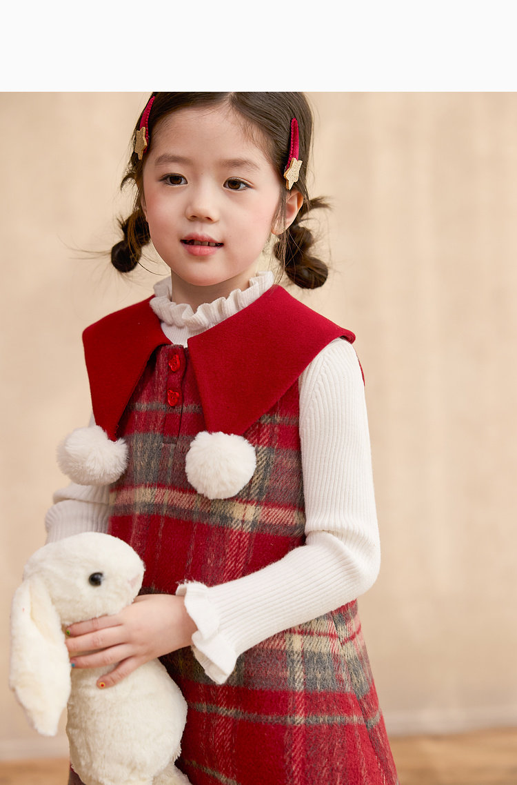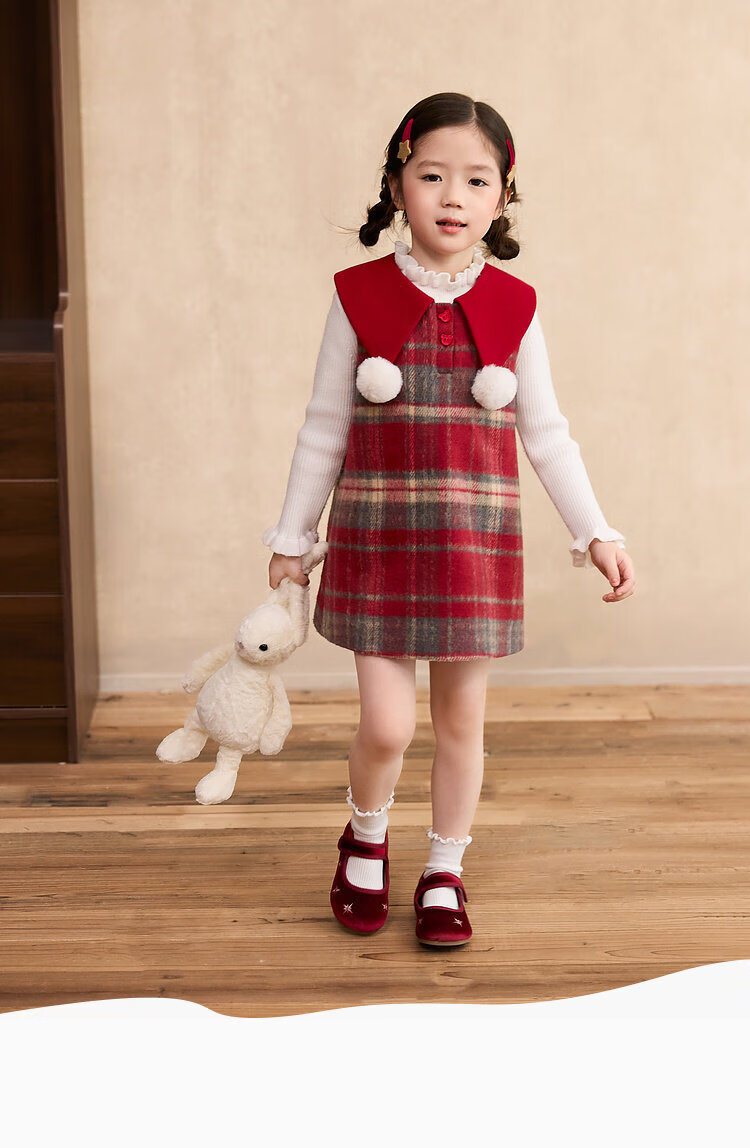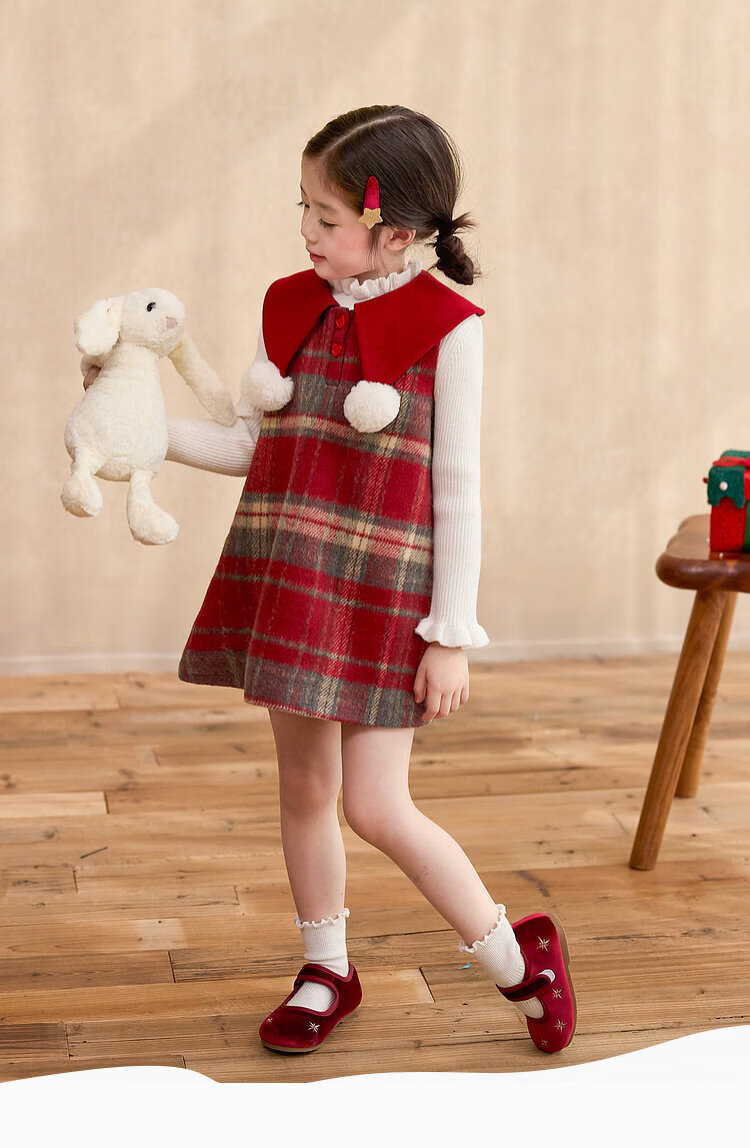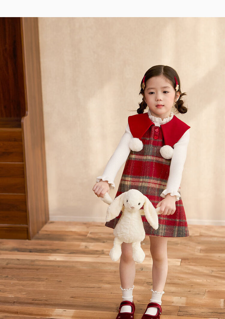 LUSON Children's Clothing Baby Plaid Red Woolen Dress Female 2026 New Girls New Year Princess Tank Top