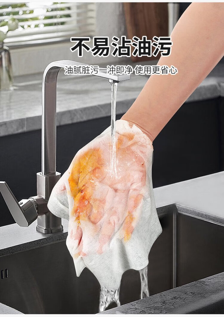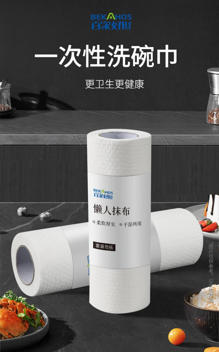 Baijiahaoshi disposable lazy rag 24*25cm 1 roll 50 pieces kitchen dishwashing rag scouring pad kitchen paper oil absorbent