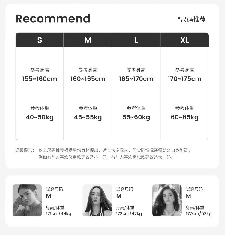 China (cm) 160-165/84-86 165-170 / 88-90 167-172 / 92-96 168-173 / 98-102 170-176 / 106-110