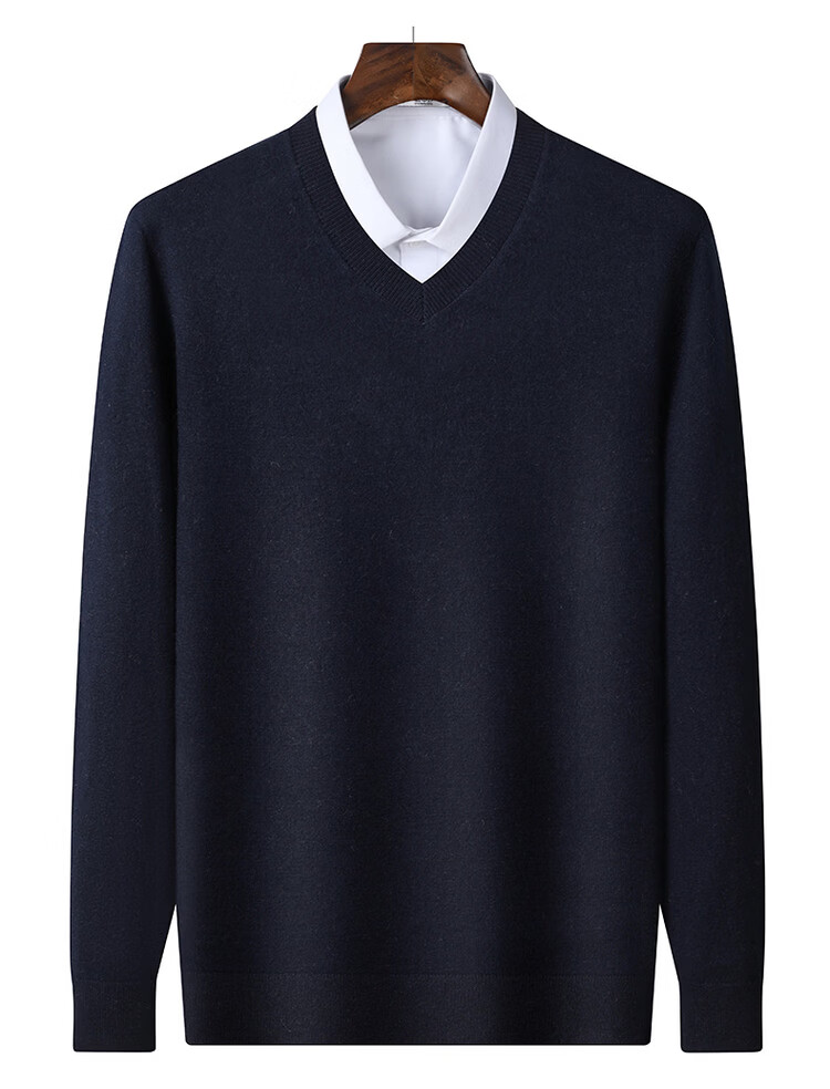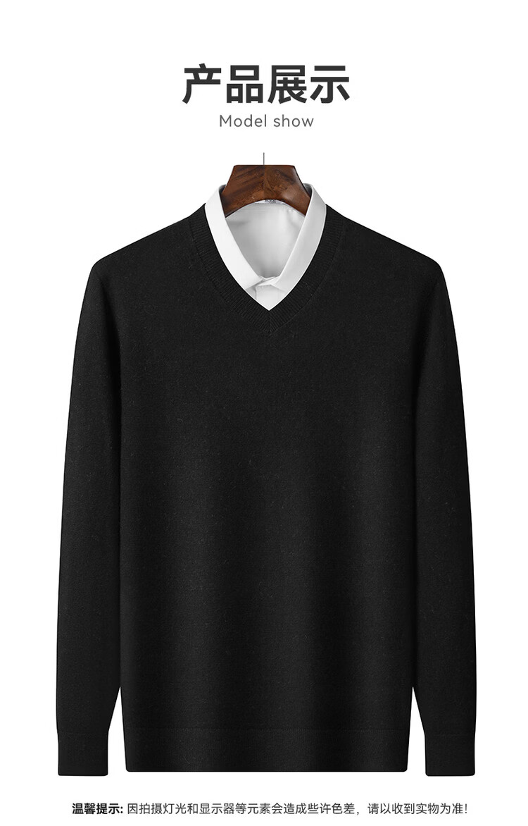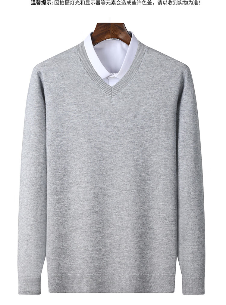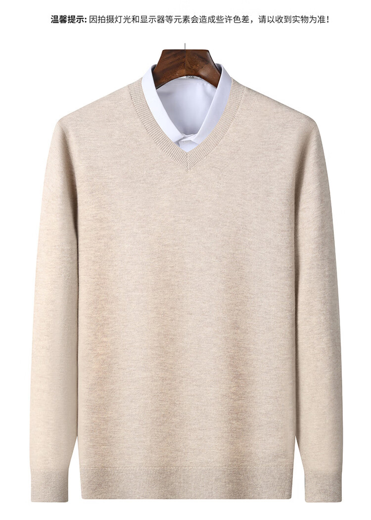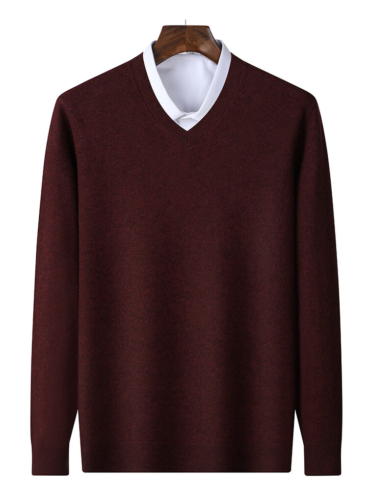 SNOWFLYING 100% sheep wool men's autumn and winter high-end comfortable solid color long-sleeved warm V-neck sweater