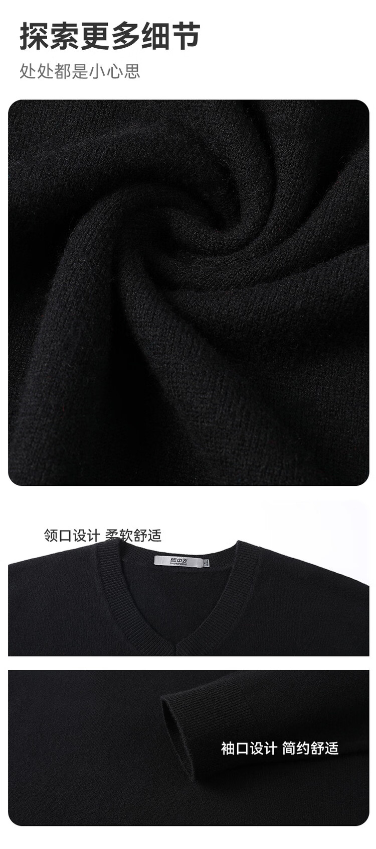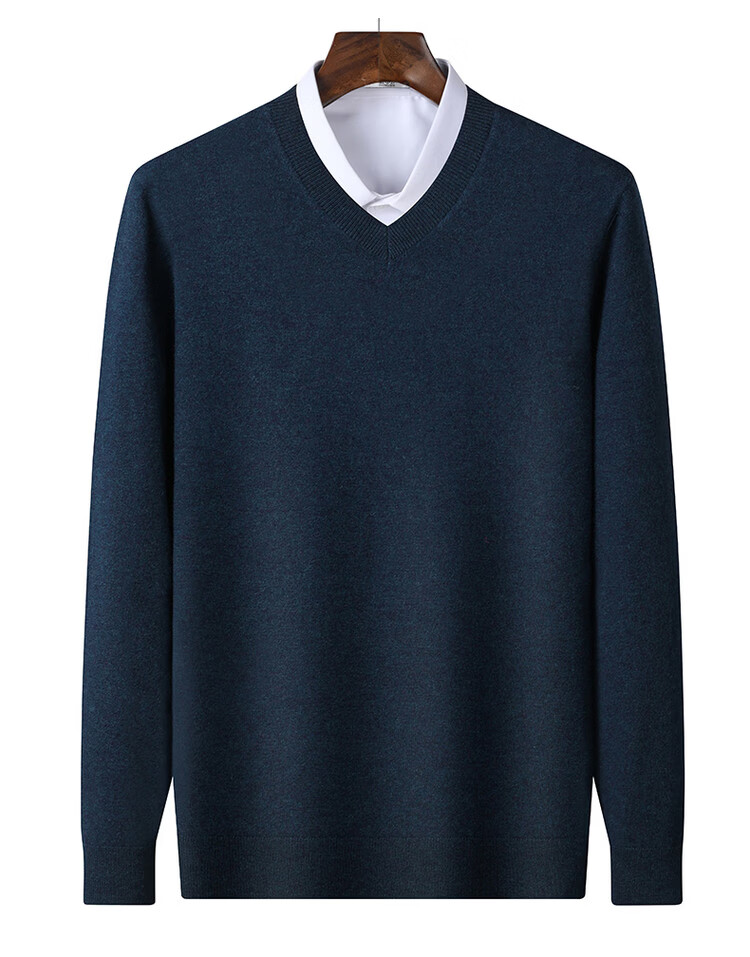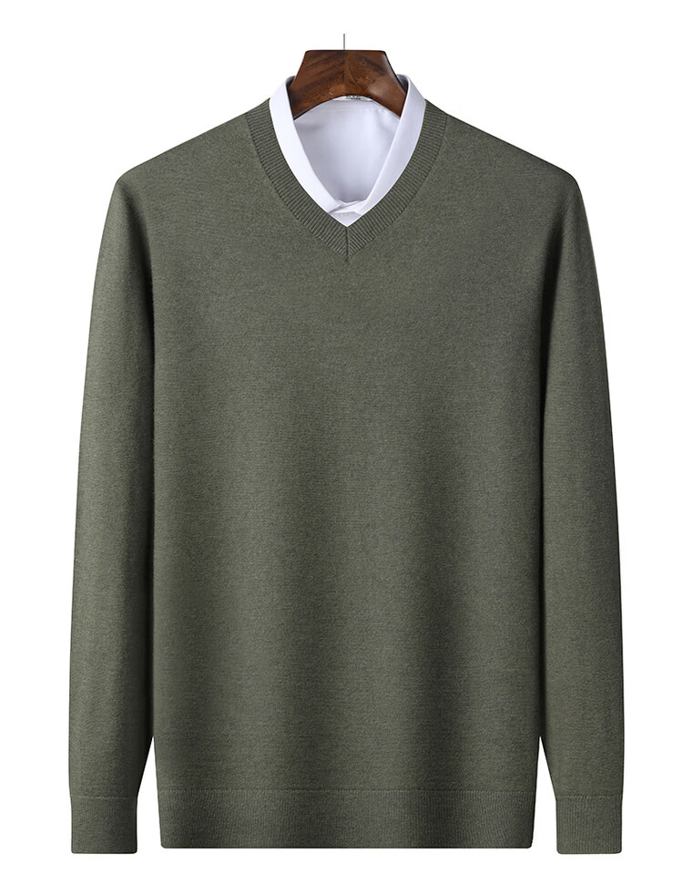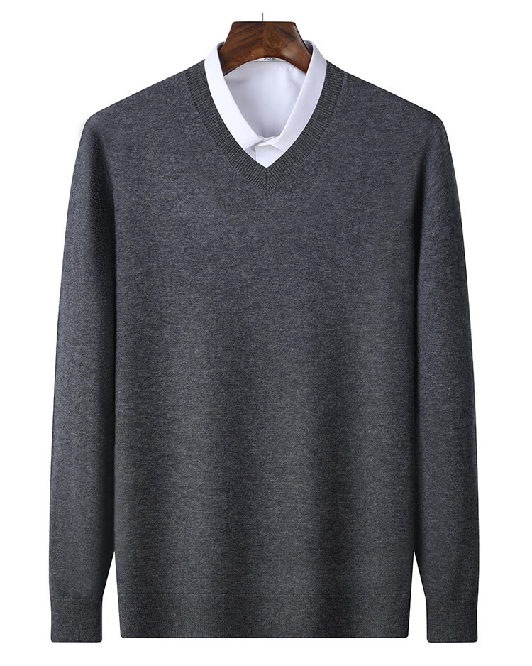 SNOWFLYING 100% sheep wool men's autumn and winter high-end comfortable solid color long-sleeved warm V-neck sweater